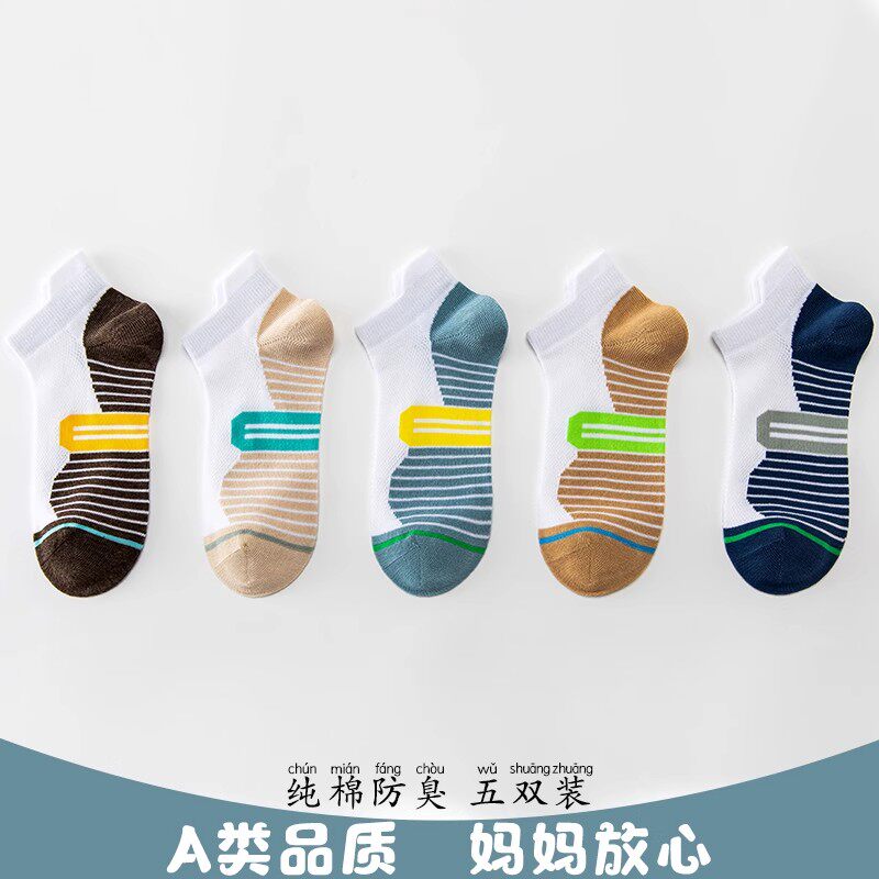 儿童袜子夏薄款纯棉无骨透气短袜男童夏季青少年薄袜夏天船袜防臭