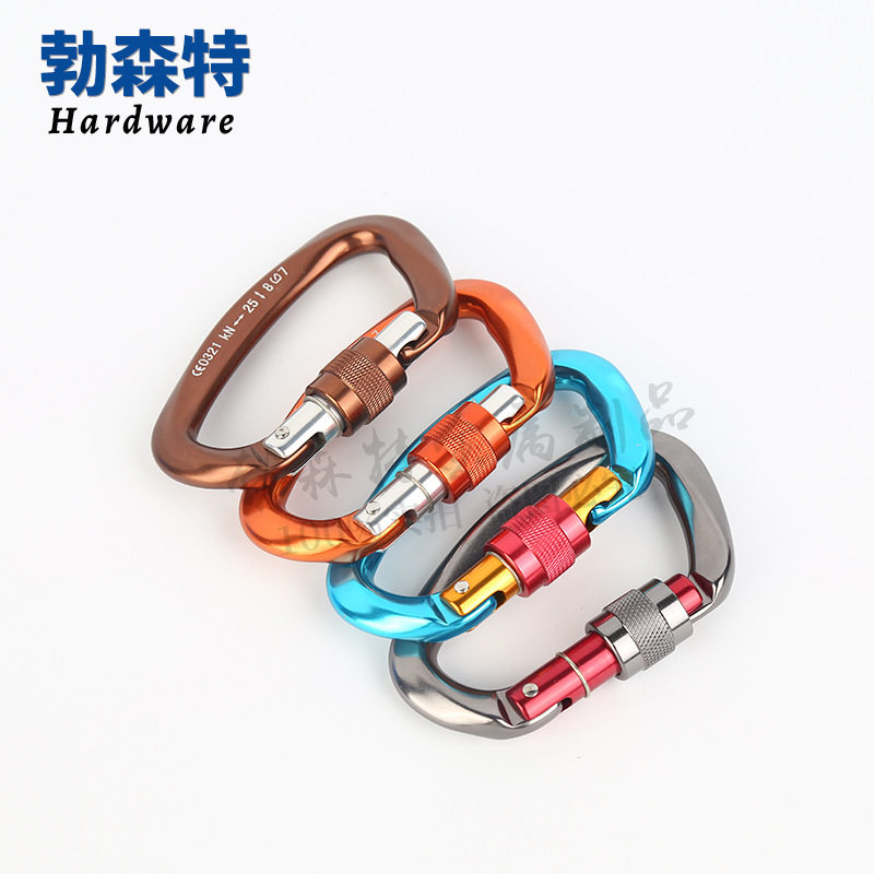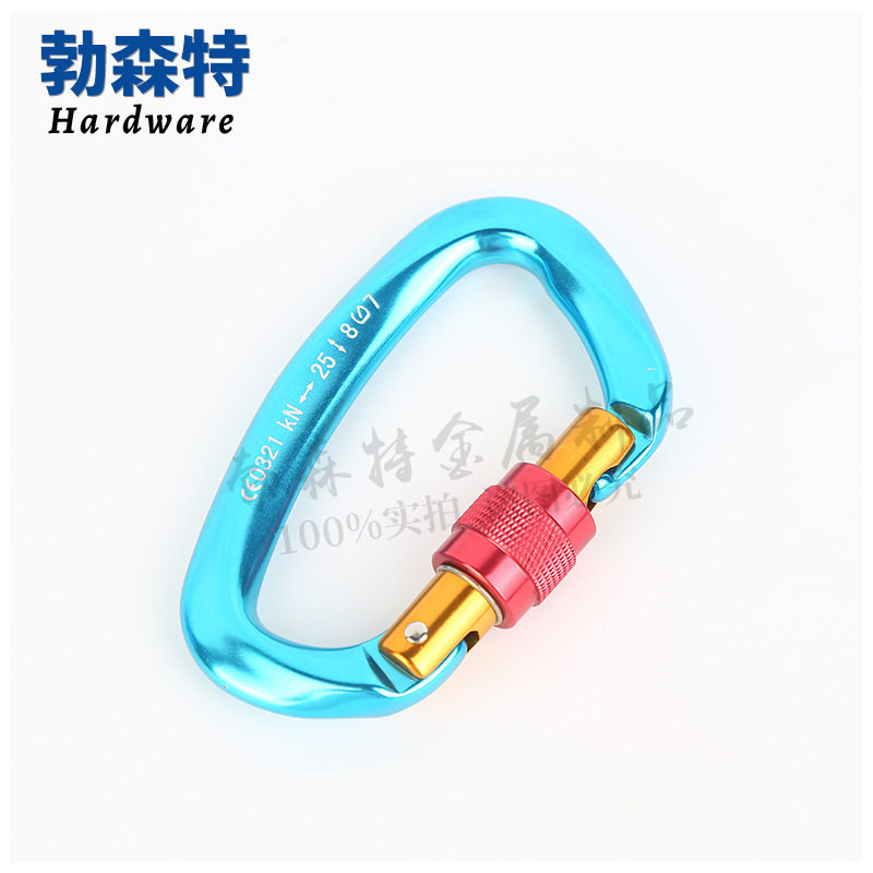 户外登山扣25KN主锁D型快挂 7075航空铝扣 攀岩装备吊床安全锁扣