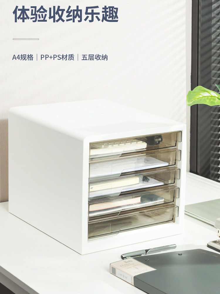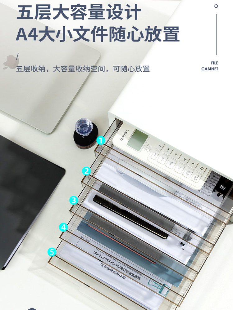 得力PB100桌面文件柜5层塑料抽屉式透明a4资料分类整理收纳箱