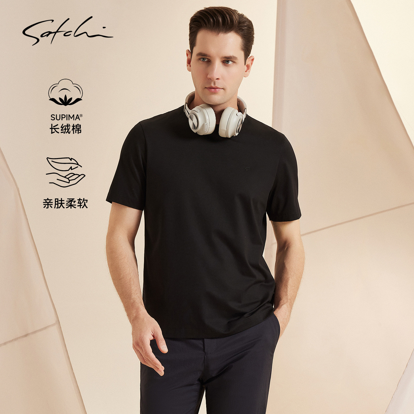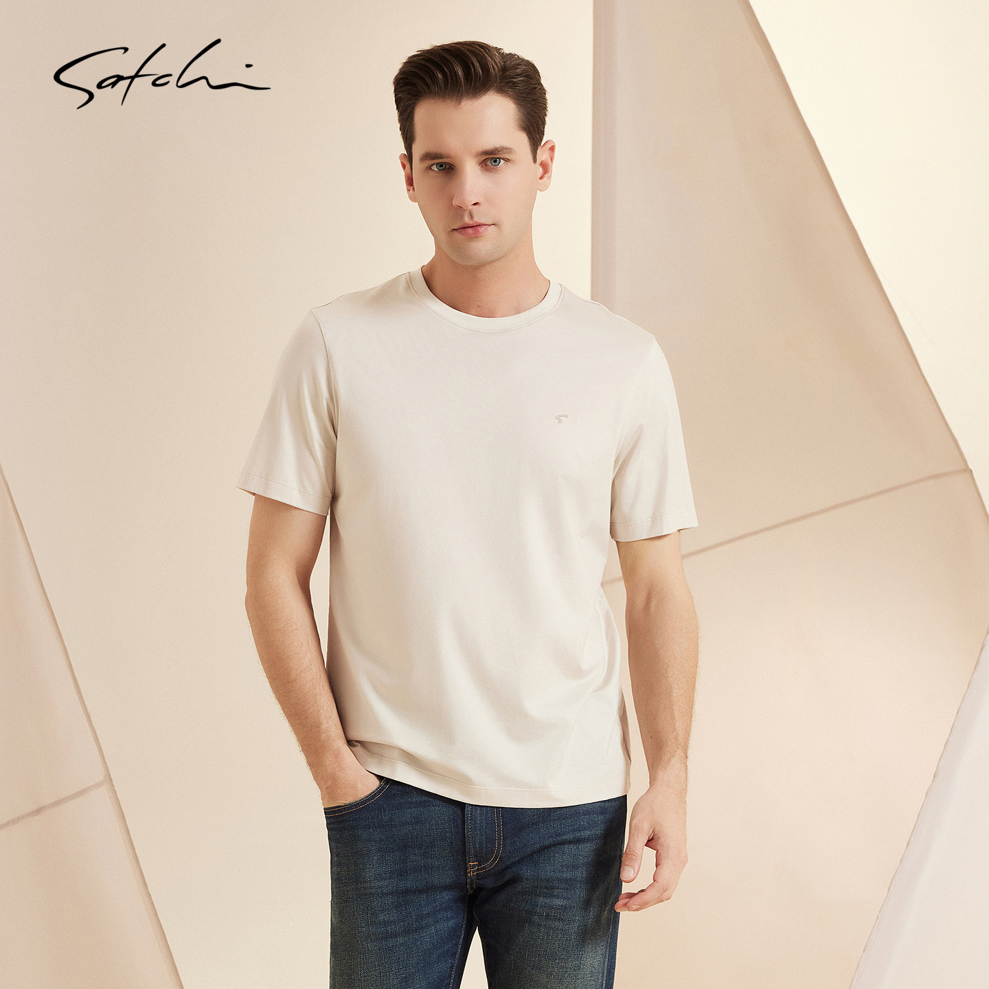 [SUPIMA长绒棉]SATCHI沙驰男装男士短袖T恤春季新款休闲圆领上衣