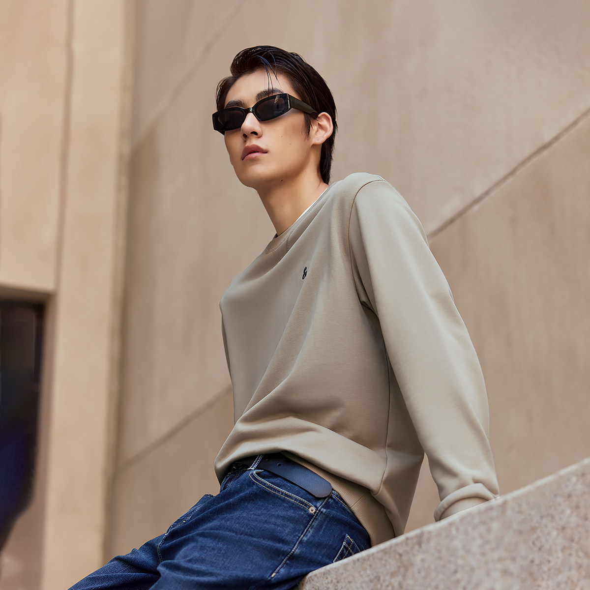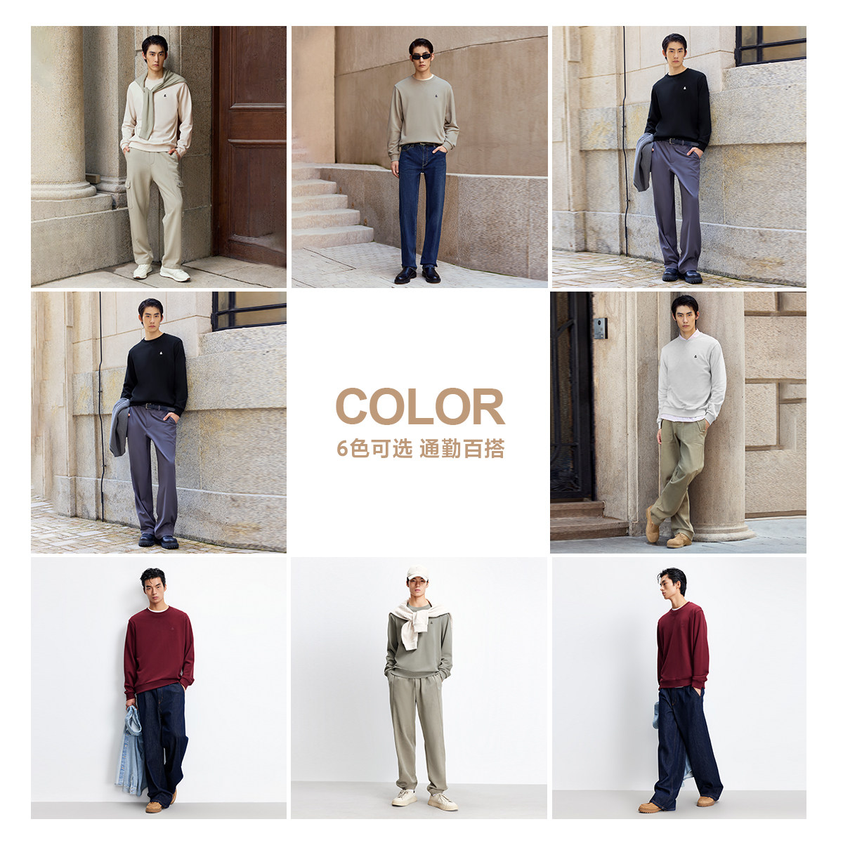 班尼路重磅卫衣男款秋季基础纯色圆领内搭男款宽松大码正肩套头衫