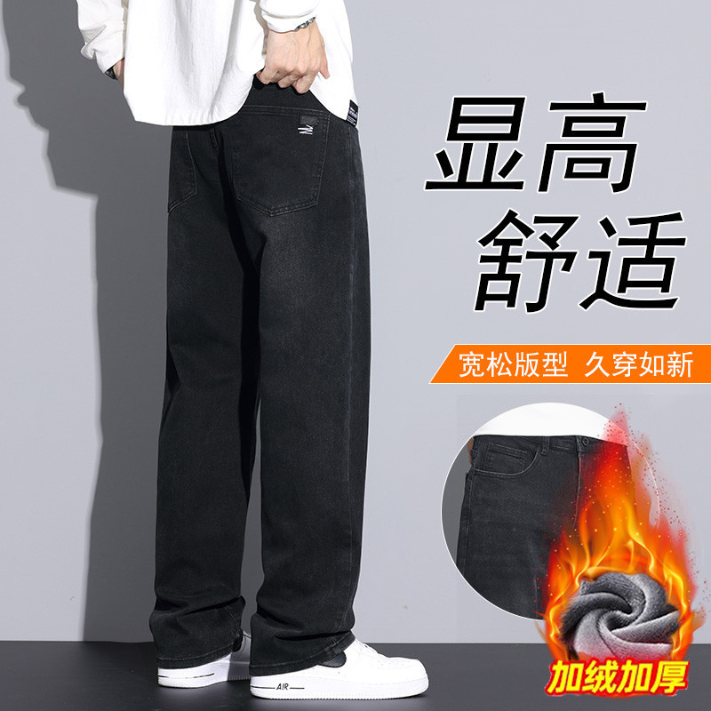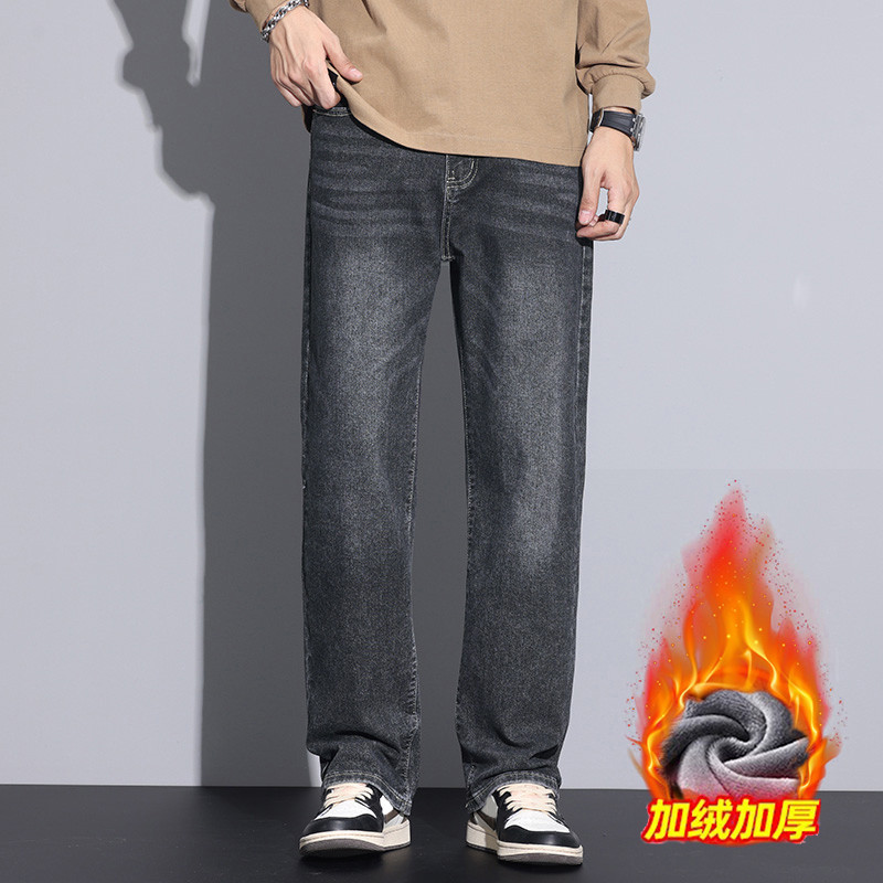 罗蒙冬季牛仔裤男士修身直筒宽松男裤2025新款休闲加绒长裤子男款