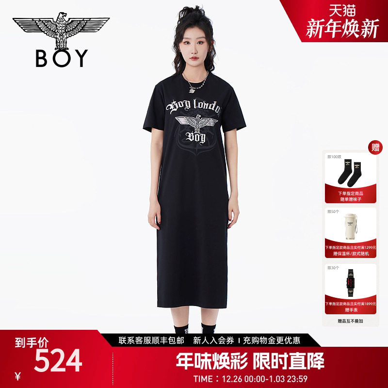 【银河梦境】BOYLONDON夏女黑色连衣裙印花时尚长裙W17095
