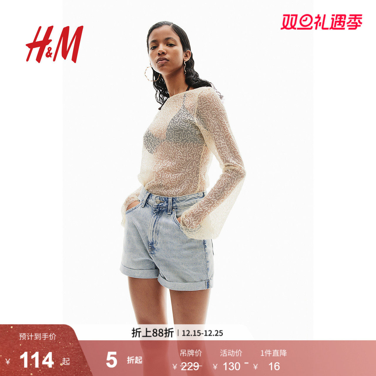 H&M女装牛仔短裤秋季欧美甜辣风棉质高腰休闲短裤1144208
