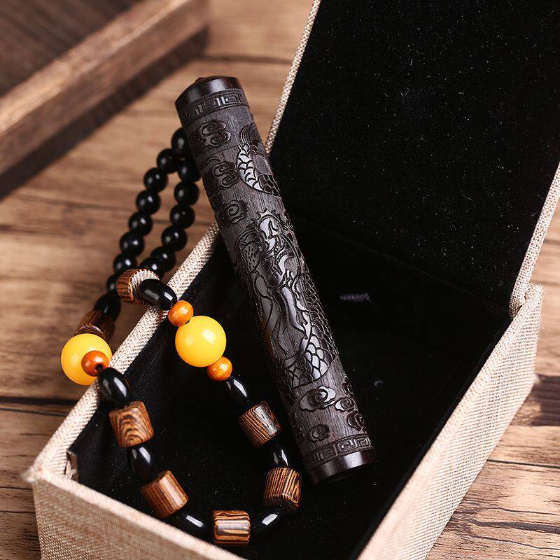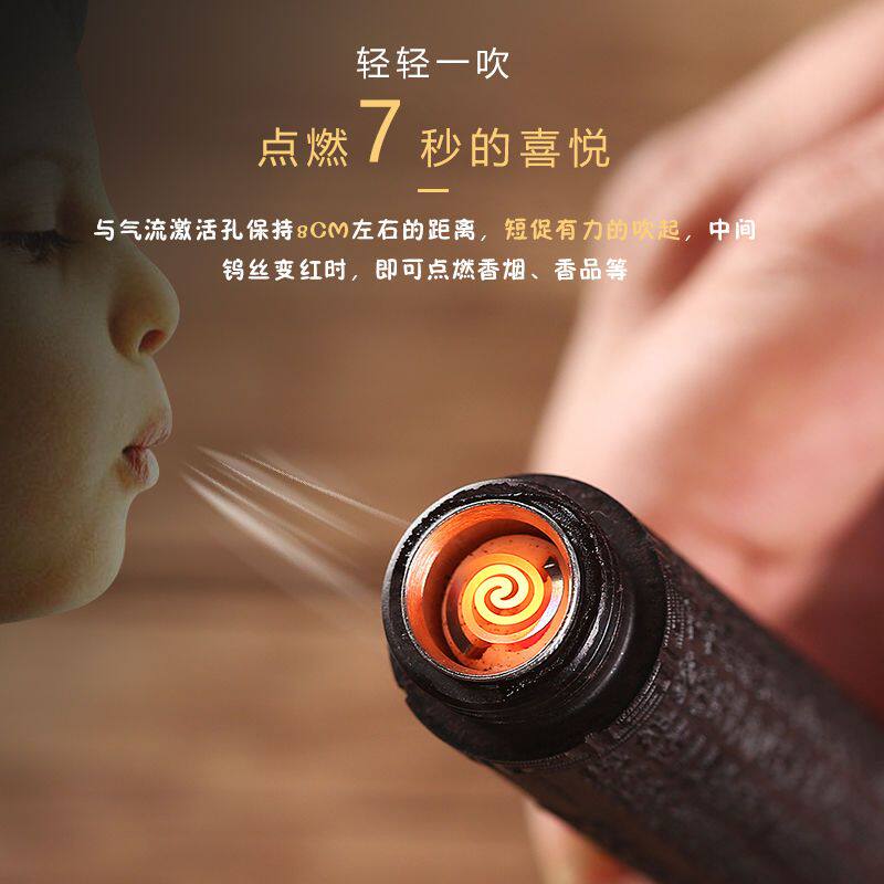 【礼盒装】充电打火机黑檀木雕刻火折子防风复古个性创意送男朋友电子点烟器吹一吹老公父亲节生日礼物高档