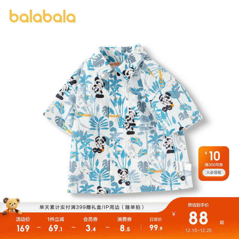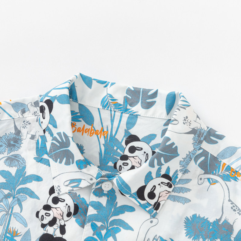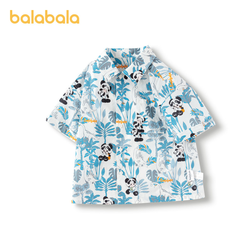 巴拉巴拉童装男童短袖衬衫新夏纯棉上衣洋气印花