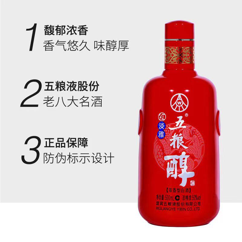 五粮液股份五粮醇红淡雅50度500ml×6瓶纯粮固态发酵浓香型白酒