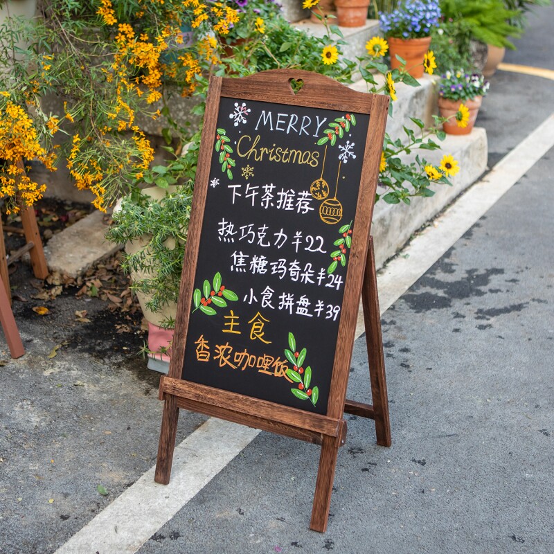 咖啡落地立式小黑板架广告牌摆摊展示牌复古店铺用价格菜单写字板折叠双面