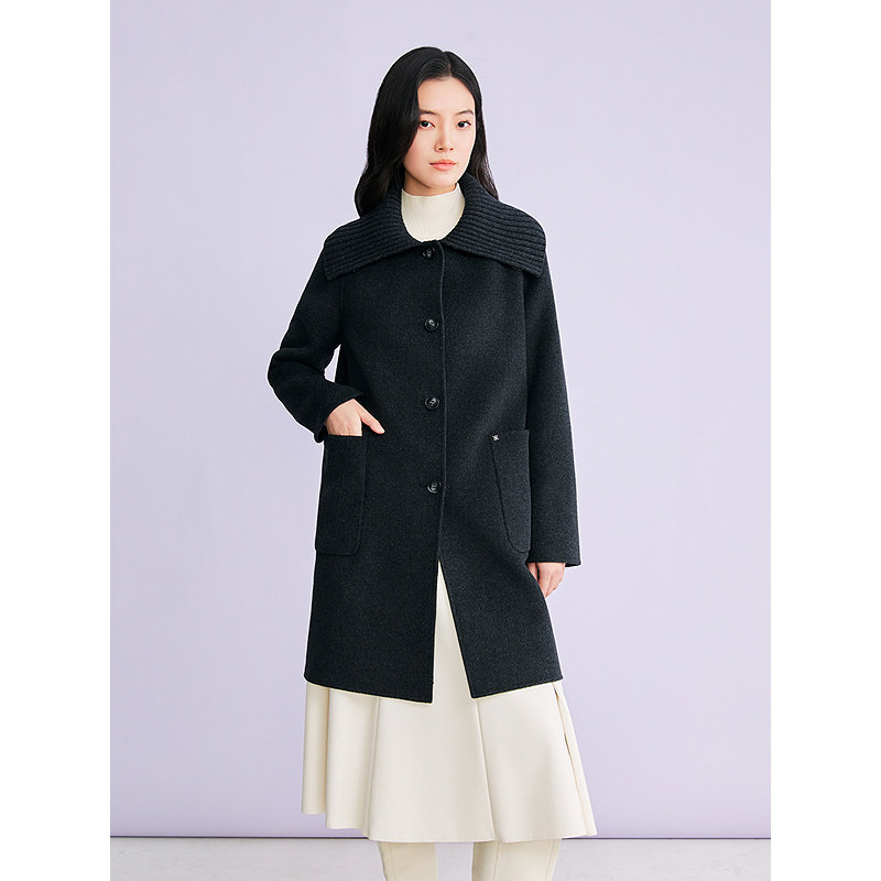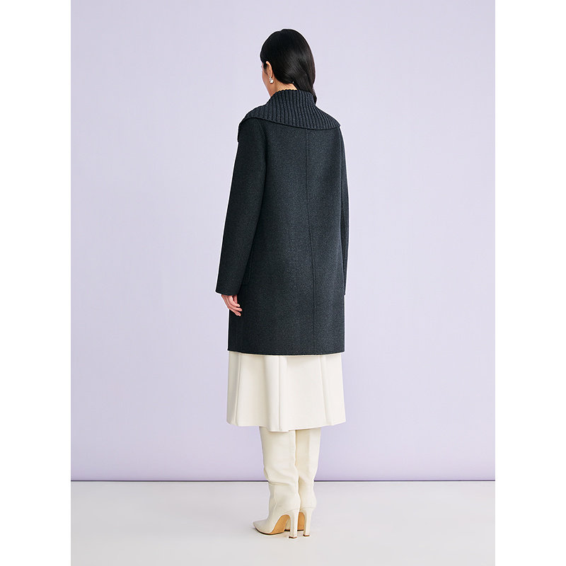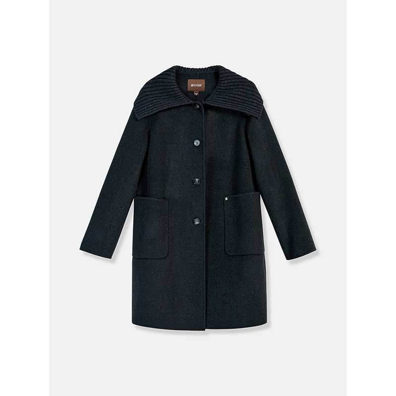 YINER音儿专选2026春季新款针织翻领拼接羊毛羊绒混纺双面呢大衣