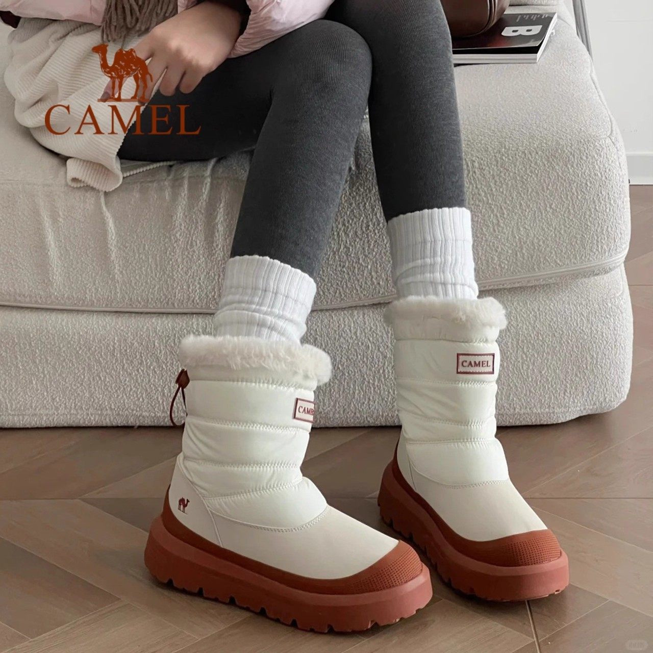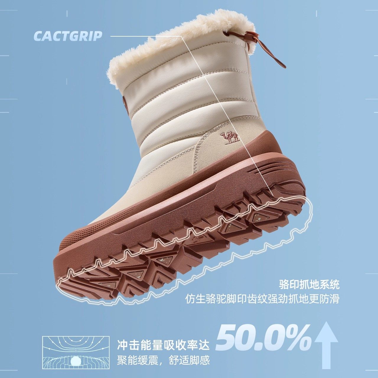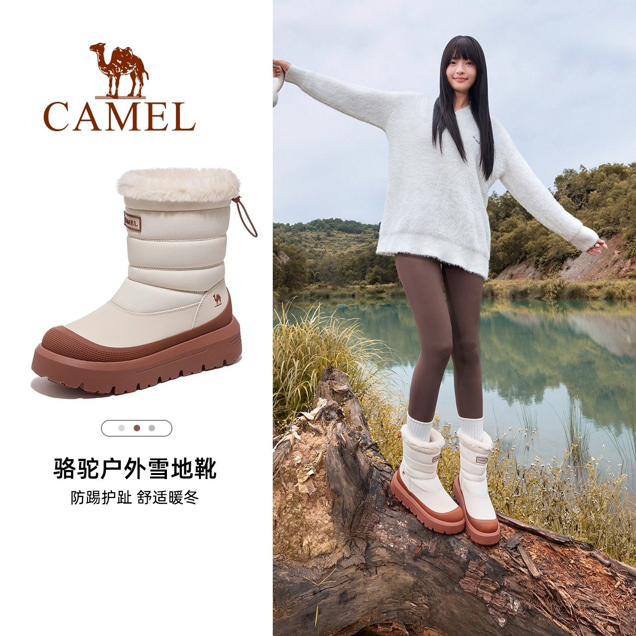 骆驼女鞋雪芙雪地靴2025冬季新款户外加绒保暖棉鞋女款厚底短靴子