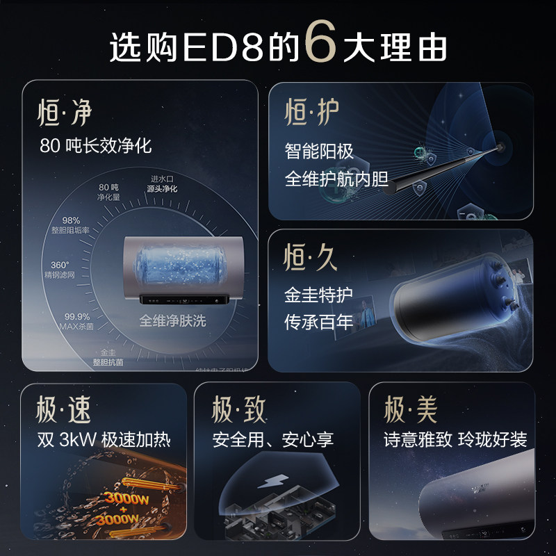 国补AO史密斯电热水器60/80/100升ED8免换镁棒免清洗以旧换新家用