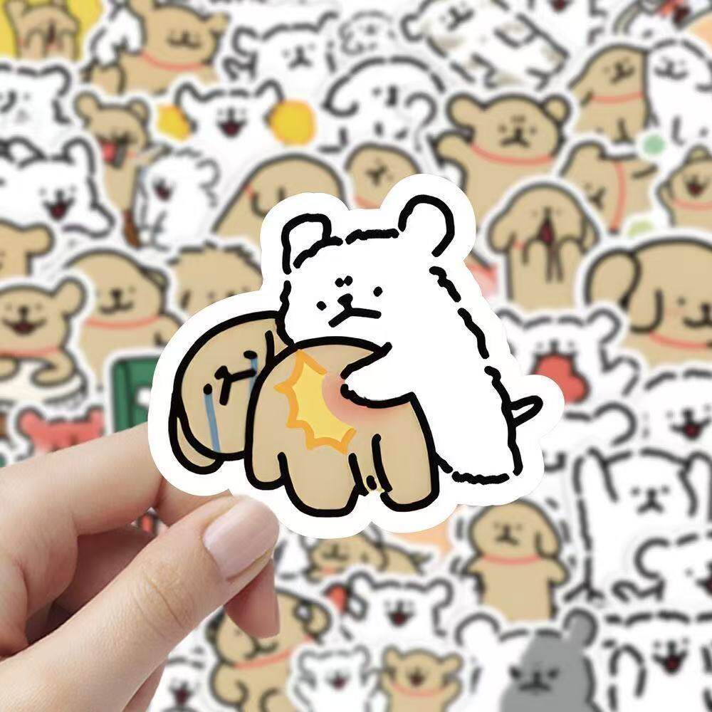 100张马尔济斯卡通可爱线条表情小狗手账贴纸手机装饰diy贴画防水