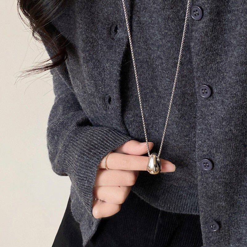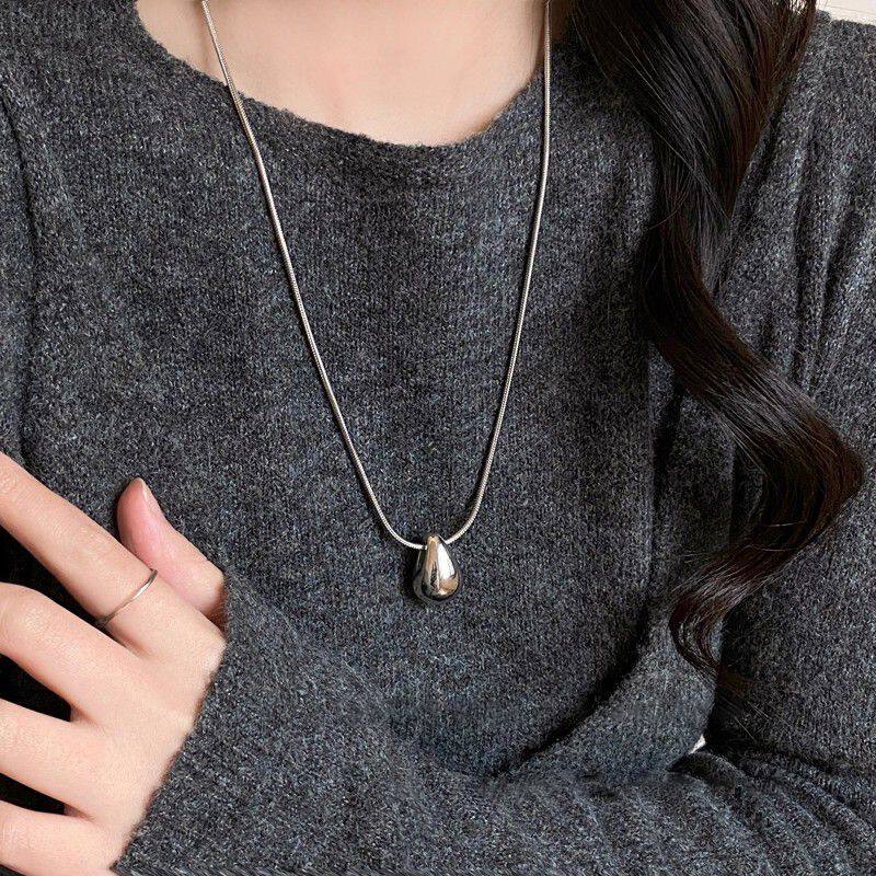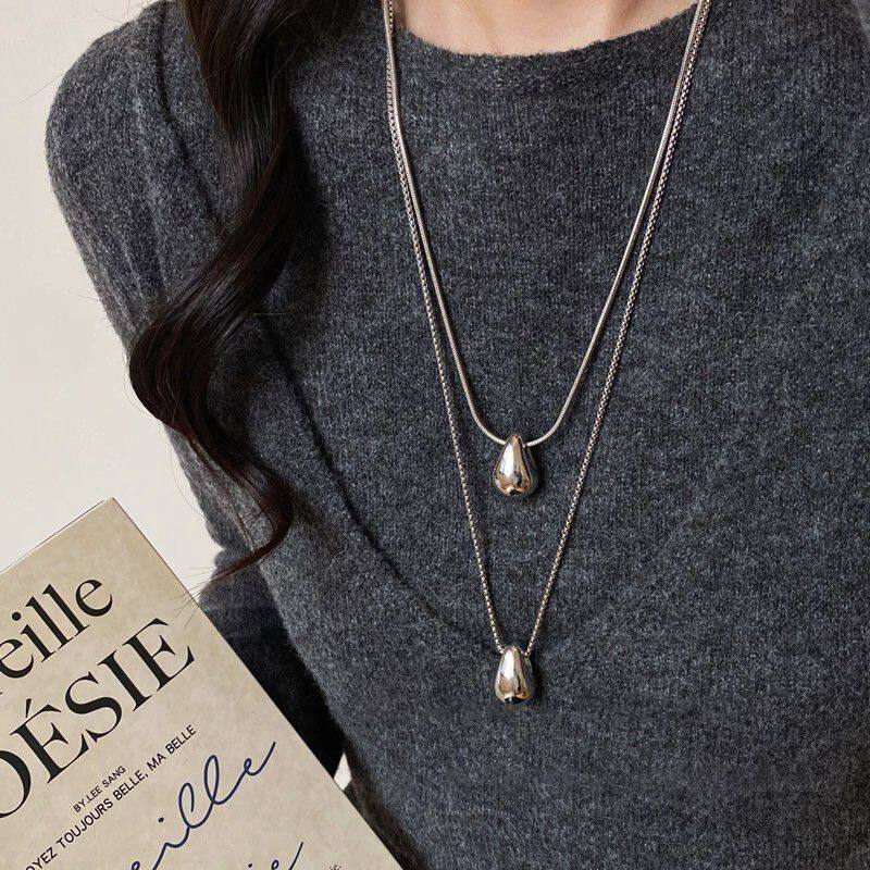 银色水滴吊坠项链女秋冬长款轻奢钛钢不掉色装饰毛衣链高级感配饰