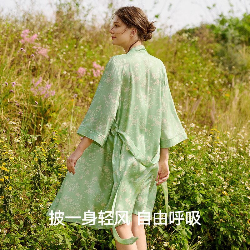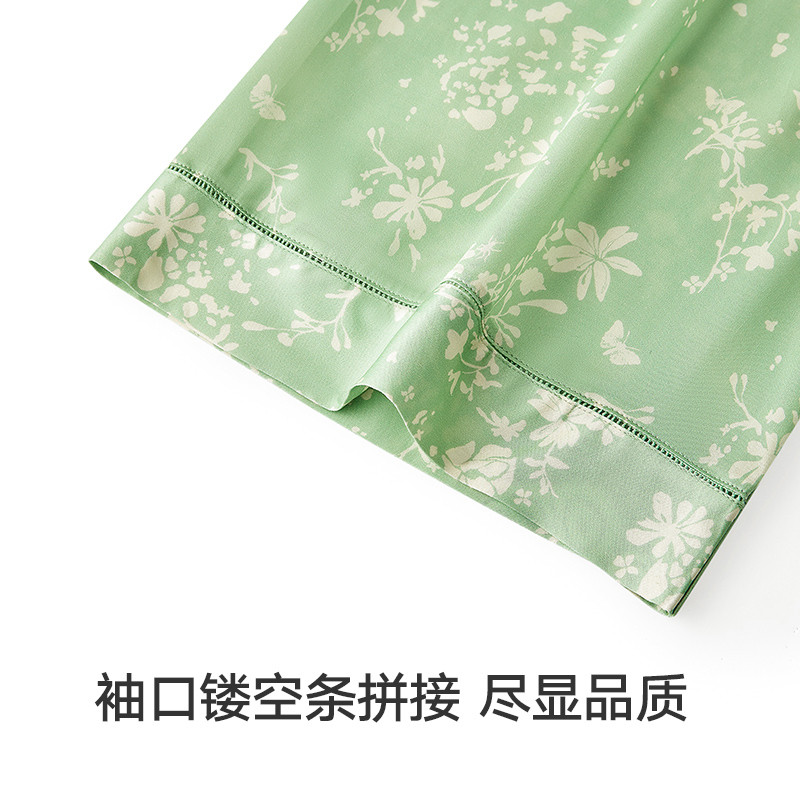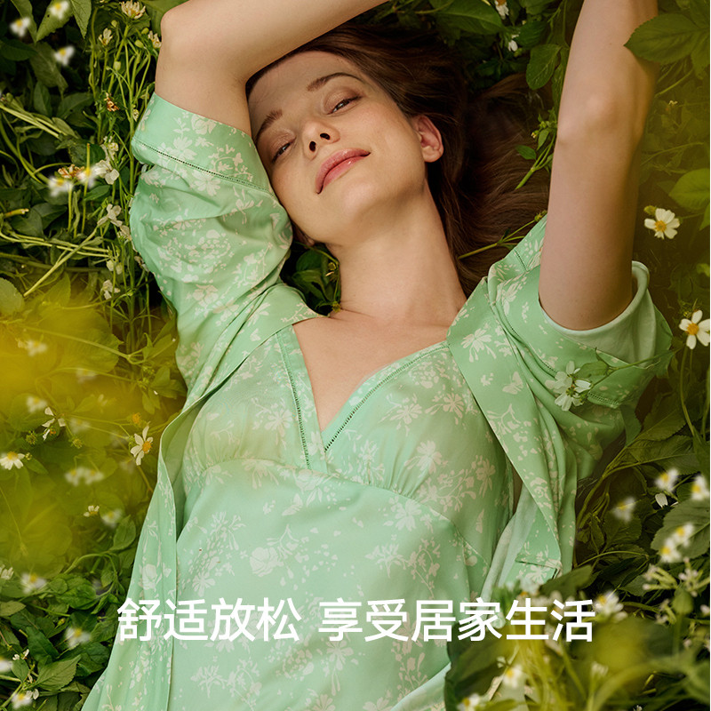 曼妮芬女士睡衣睡袍性感度假风家居服印花春夏季晨袍