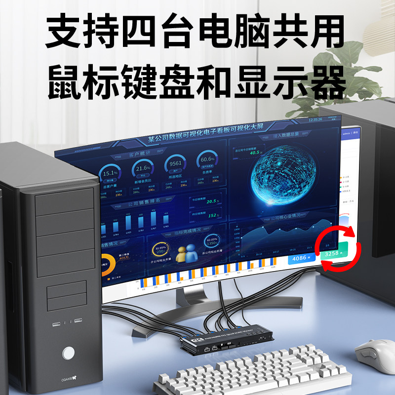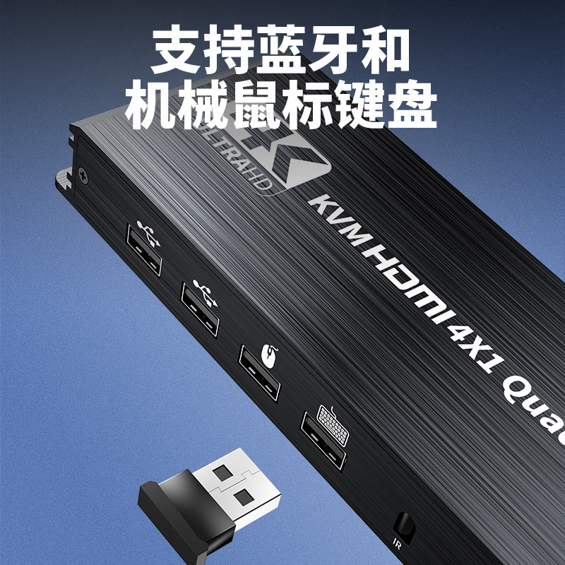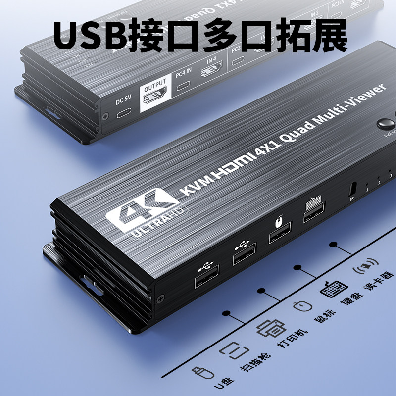 优联kvm分屏器hdmi四进一出无缝切换器不黑屏4K高清视频4进1出四画面分割分屏器usb共享切换键盘切换dnf