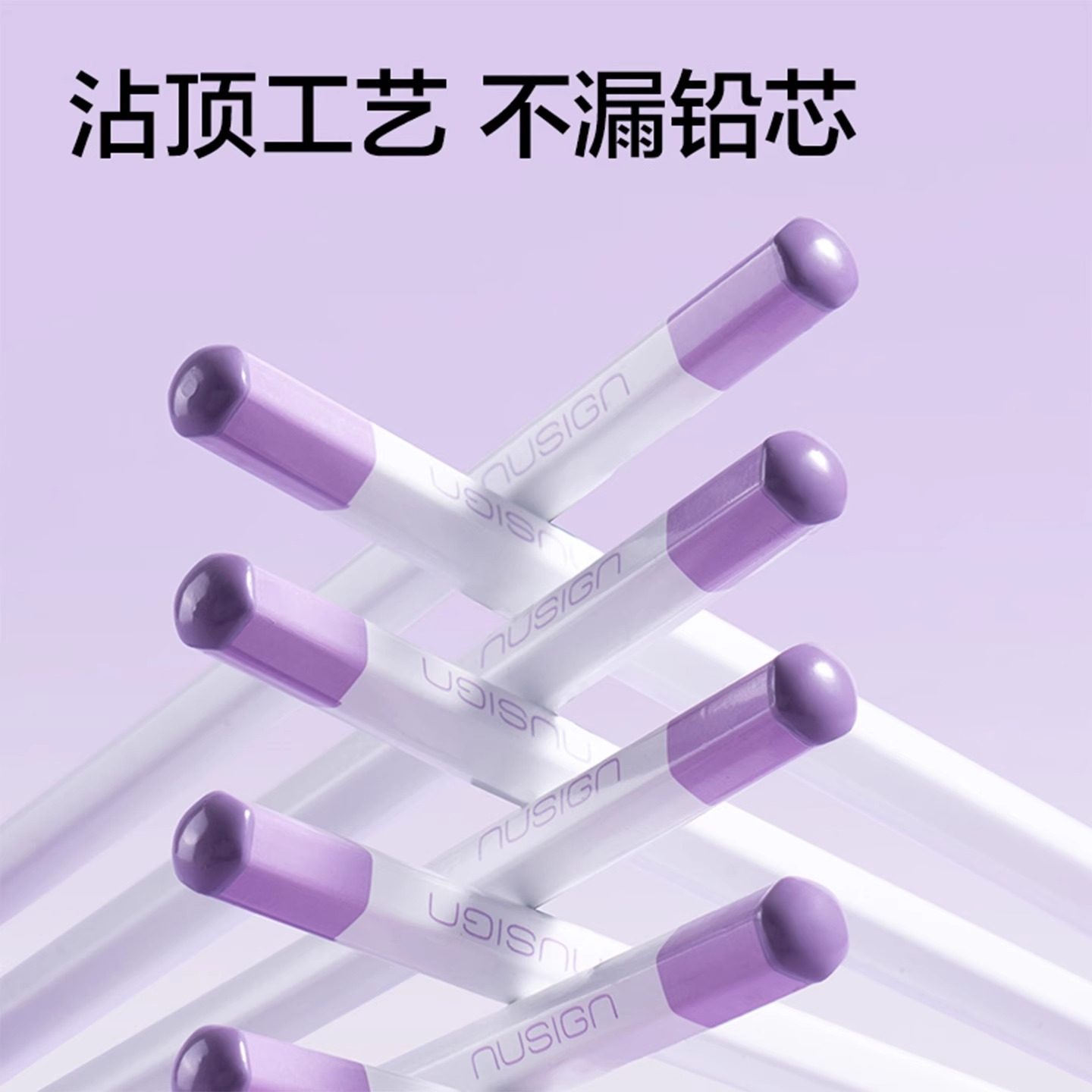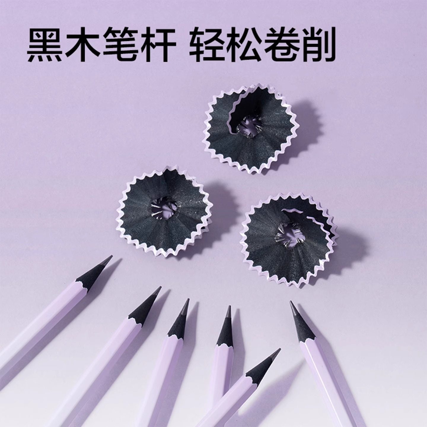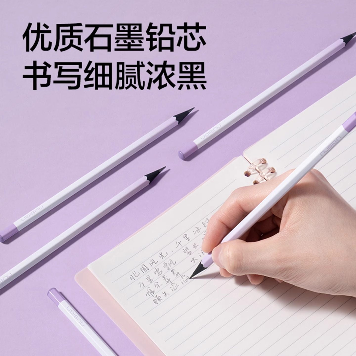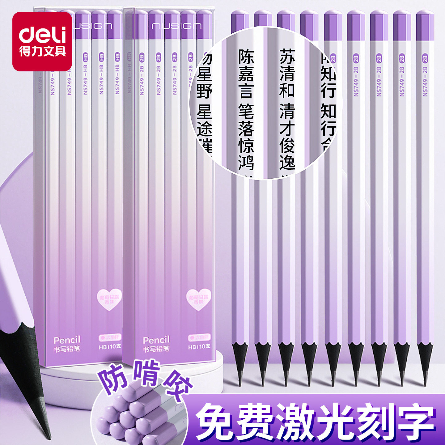 得力纽赛刻字六角杆铅笔免费雕刻学生用不易断高颜值紫色香味石墨无铅毒书写2b黑色儿童铅笔