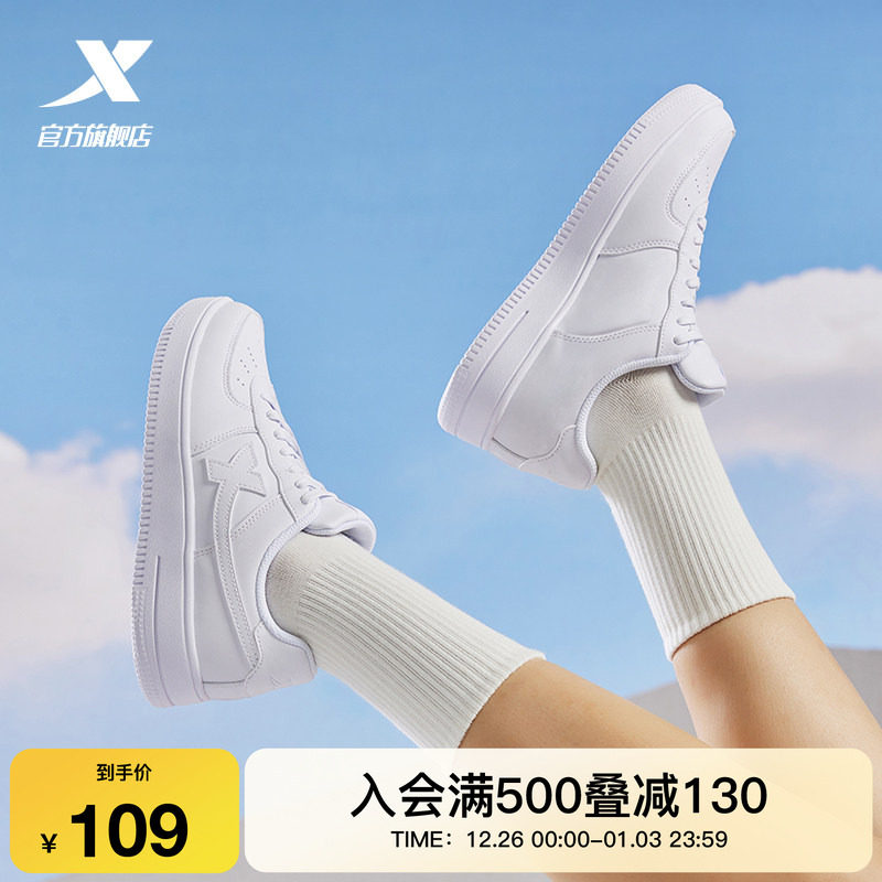 特步小白鞋女鞋冬季情侣休闲鞋子男鞋空军一号厚底百搭运动鞋板鞋