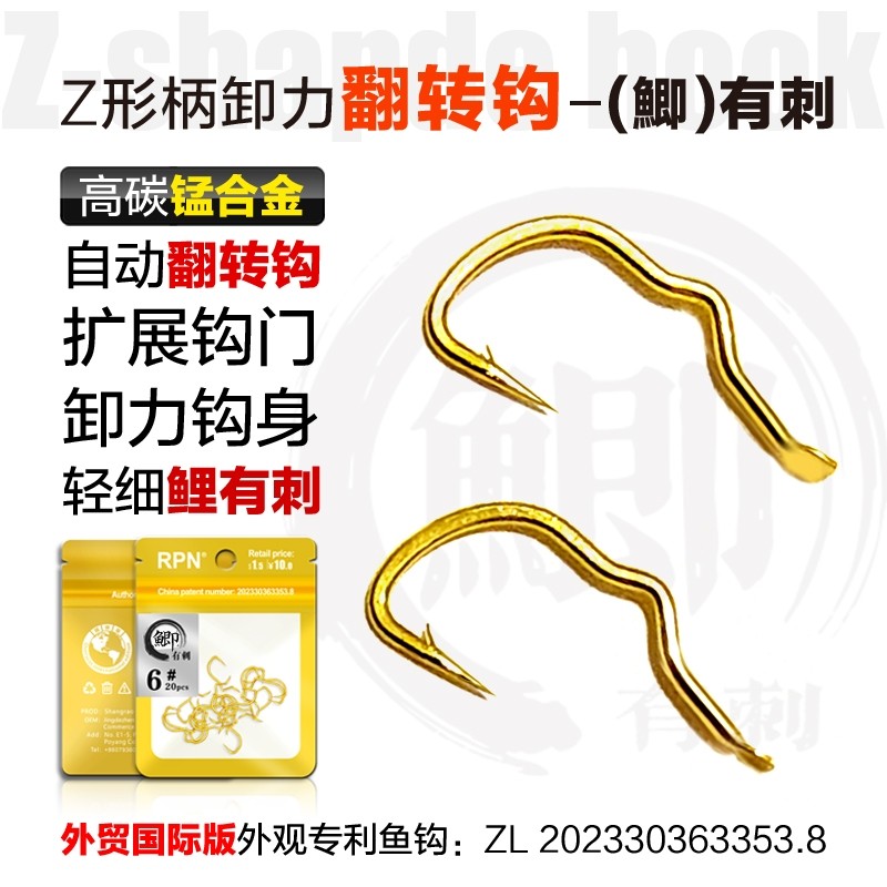 Z形柄-自动翻转钩正品金海夕野钓鲫鱼有倒刺鱼钩散装歪柄卸力鱼钩