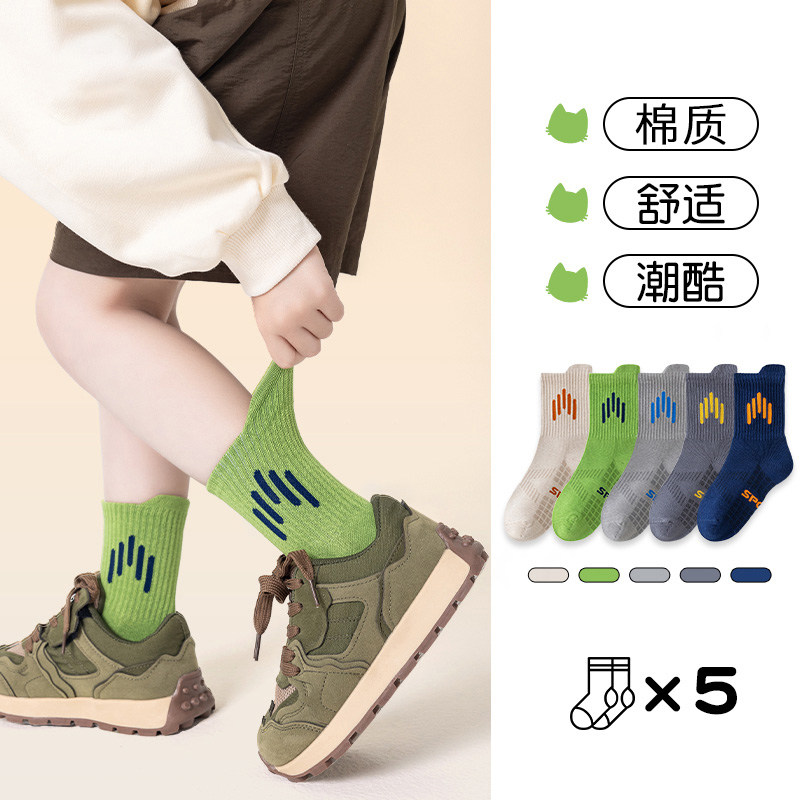 纯棉童袜春秋款夏季薄款防臭不起球男女袜子全棉中筒袜时尚儿童袜