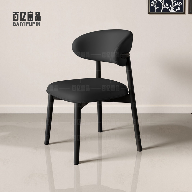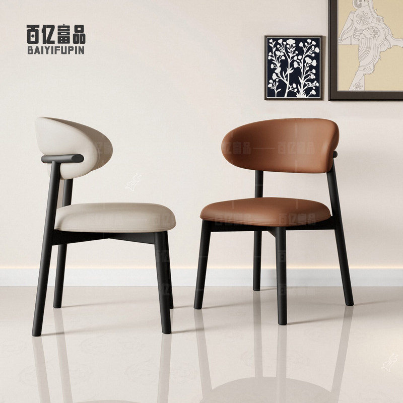 轻奢侘寂风餐椅皮软包设计师现代弯曲木咖啡厅实木椅子家用书房椅