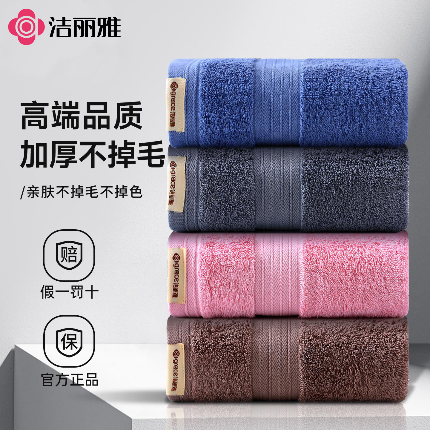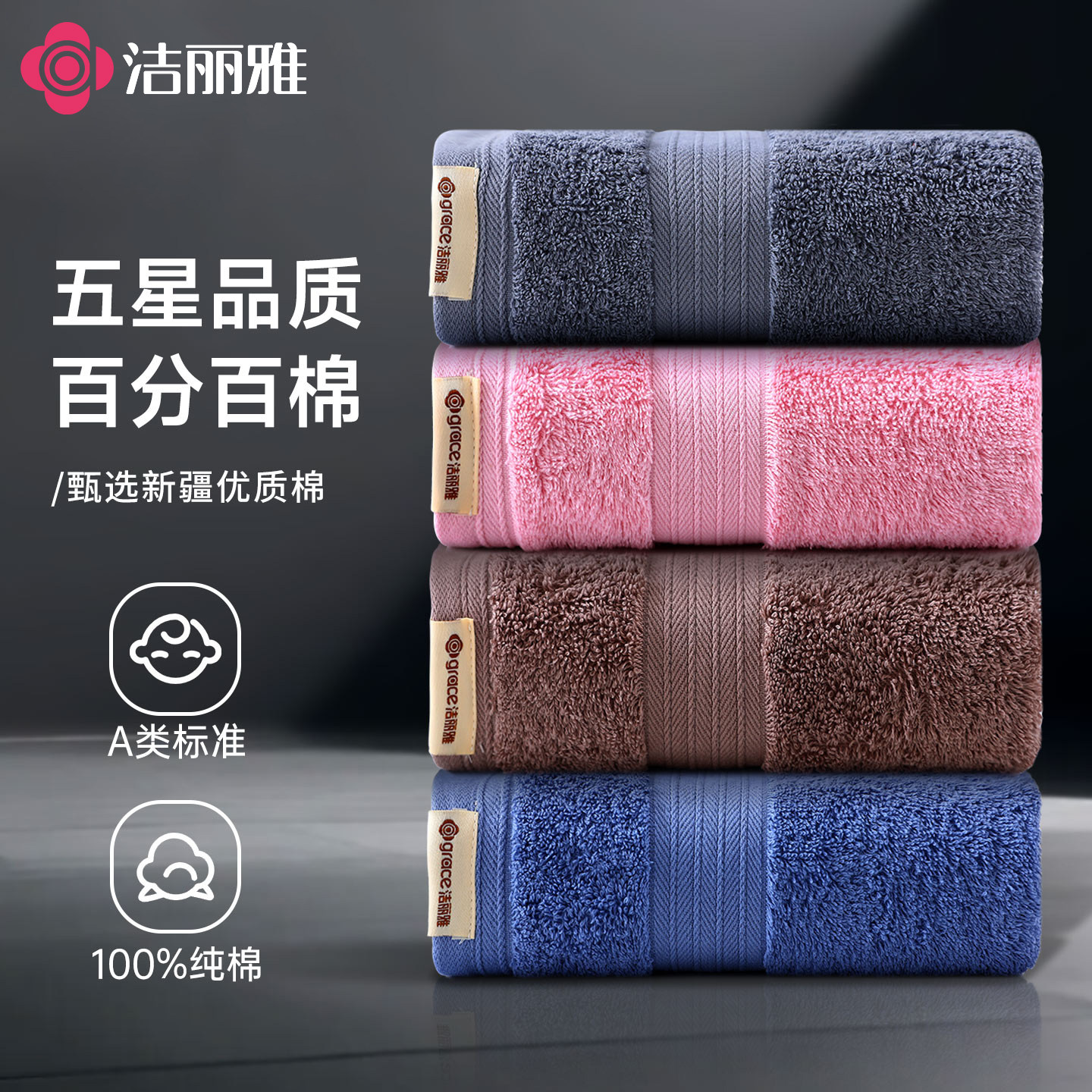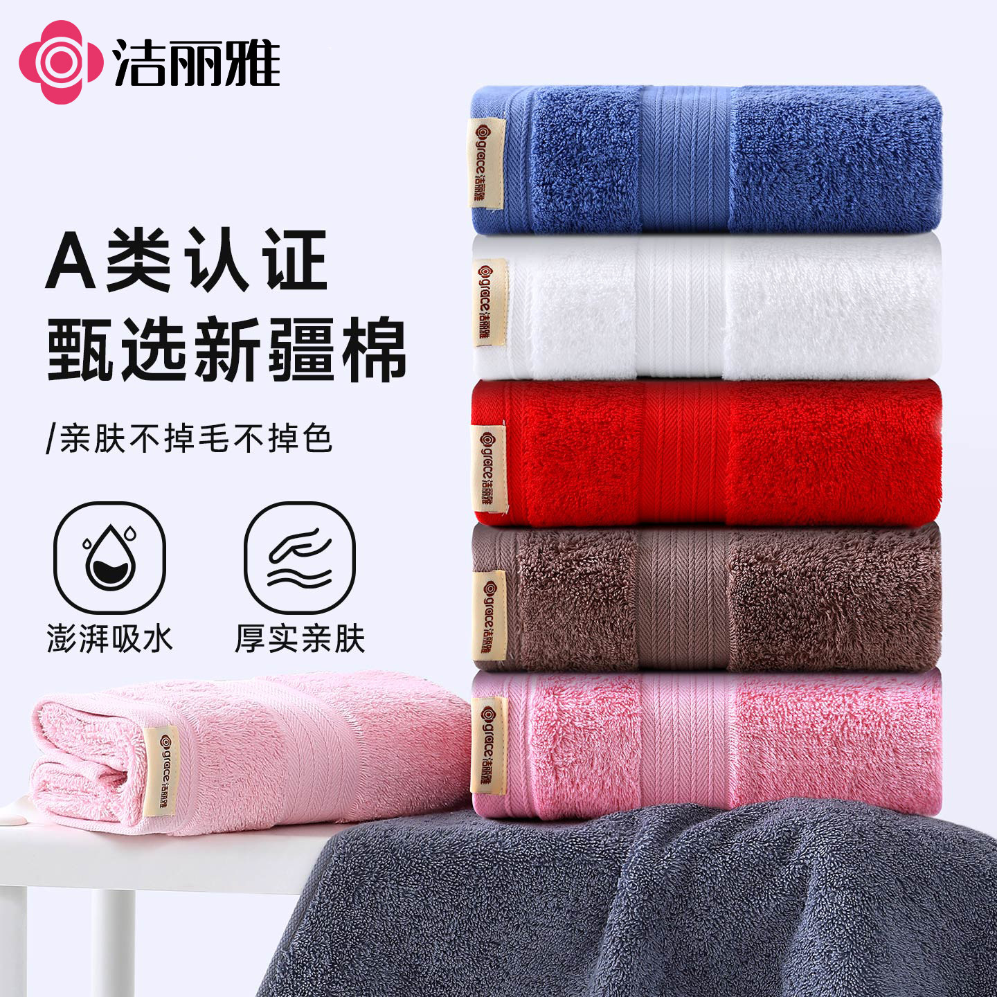 洁丽雅纯棉毛巾5A抑菌加厚吸水成人家用柔软亲肤不易毛不掉絮面巾