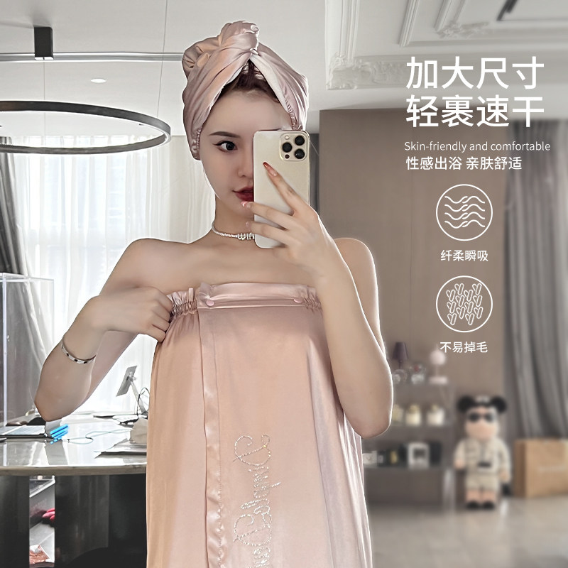 DIMDEVL汀黛25年抹胸纯欲浴巾女高级性感可穿可裹浴裙浴帽套装