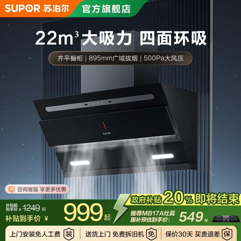苏泊尔抽油烟机厨房家用大吸力自清洗侧吸小型脱排吸油烟机C3S