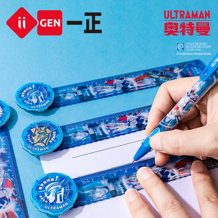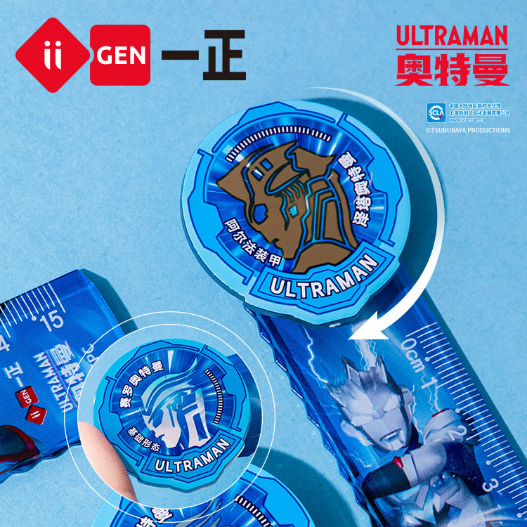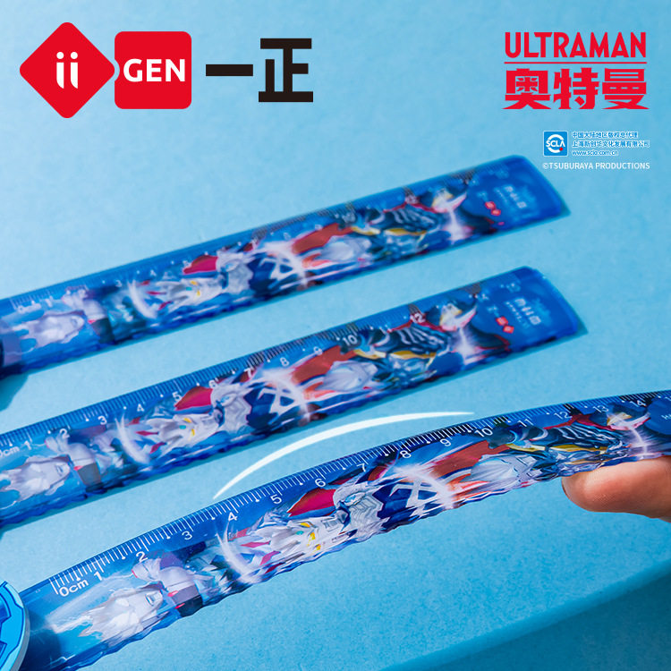 正版奥特曼15CM转转尺趣味减压卡通小学生刻度直尺男生儿童波浪尺