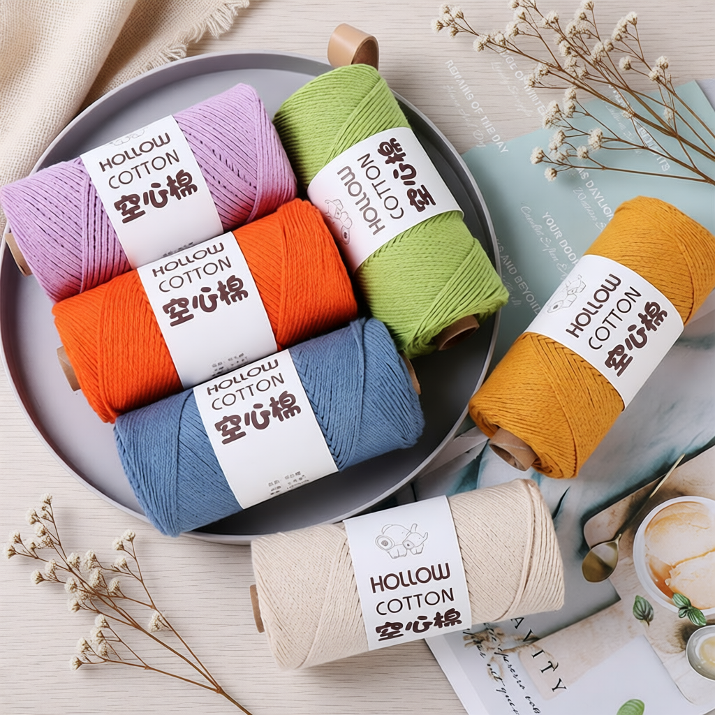 cloudcandy精梳空心棉线2mm中粗圆股纱线手工编织diy勾包包线线团