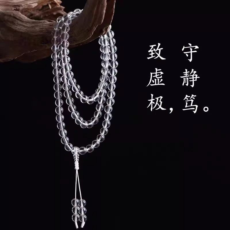 手持佛珠手链念珠人造水晶108颗项链玻璃仿白水晶手串多圈男女款