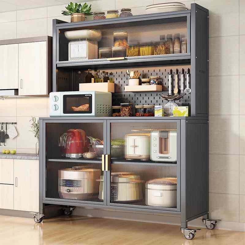 厨房置物架家用落地收纳柜餐边柜一体靠墙多功能储物柜微波炉橱柜