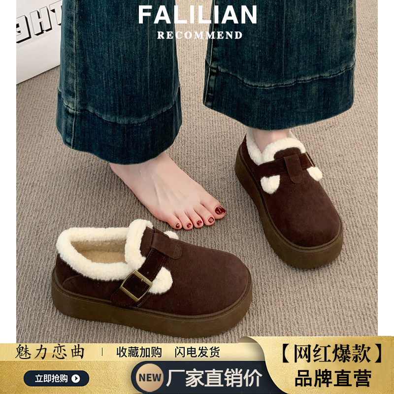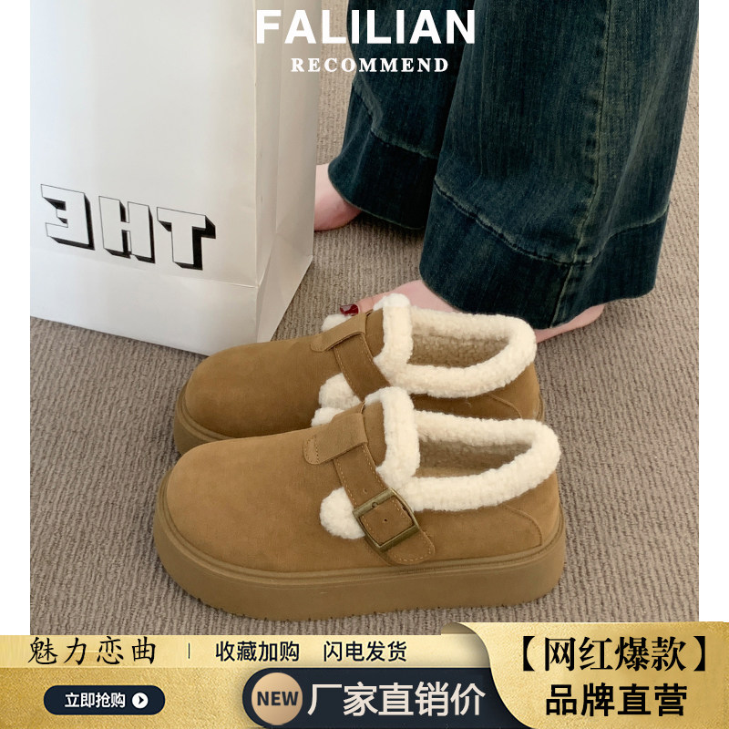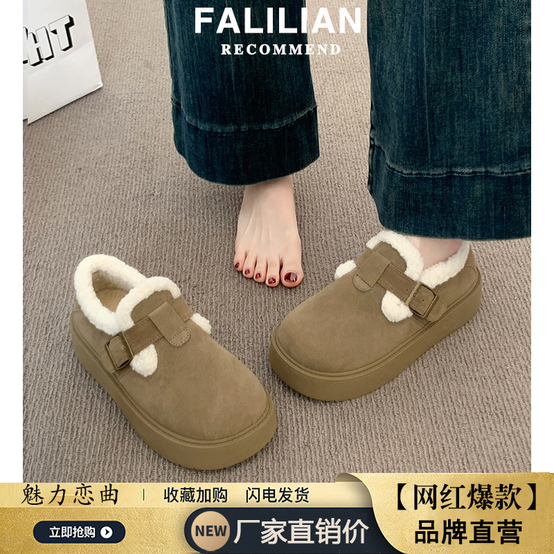 厚底加绒豆豆勃肯鞋女2025新款秋冬季乐福鞋博肯棉鞋子保暖雪地靴