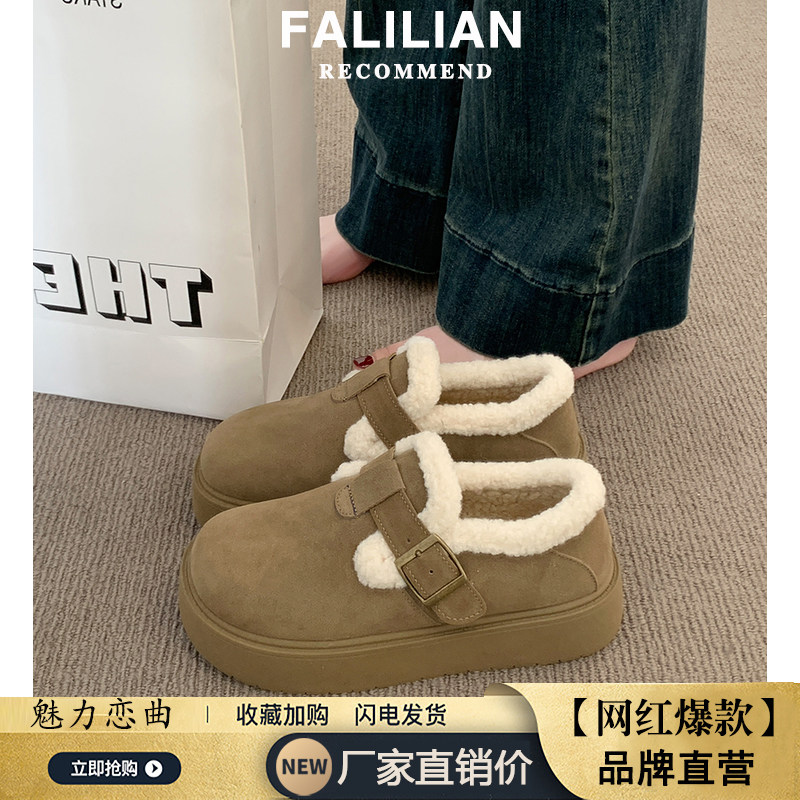 低帮厚底雪地靴女2025新款冬季懒人一脚蹬毛毛棉鞋加绒加厚女鞋子