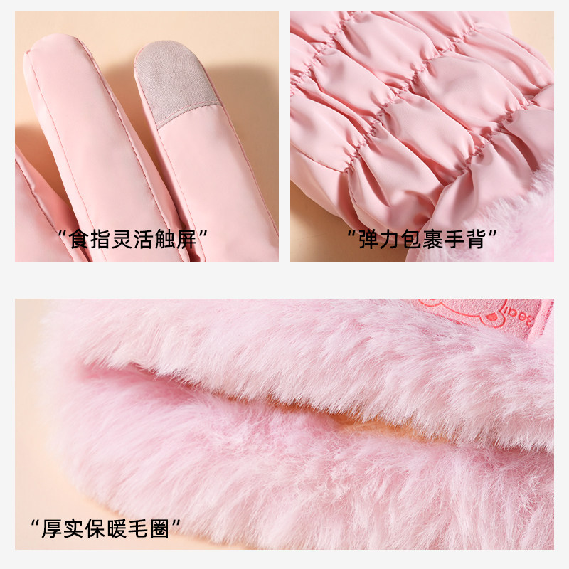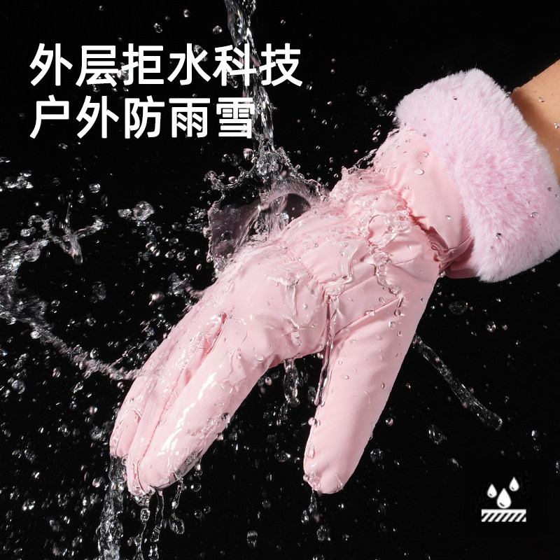 防水手套冬季女士保暖触屏骑行电动车防寒加绒加厚防风棉防风滑雪