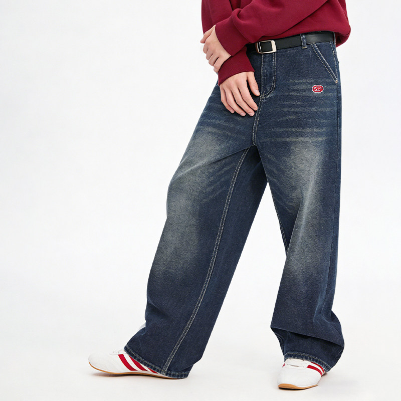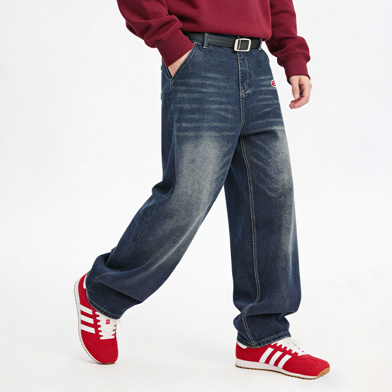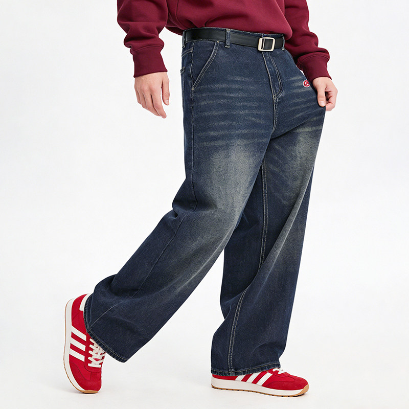森马牛仔裤男猫须做旧复古宽松直筒裤2025秋冬新款长裤子经典质感