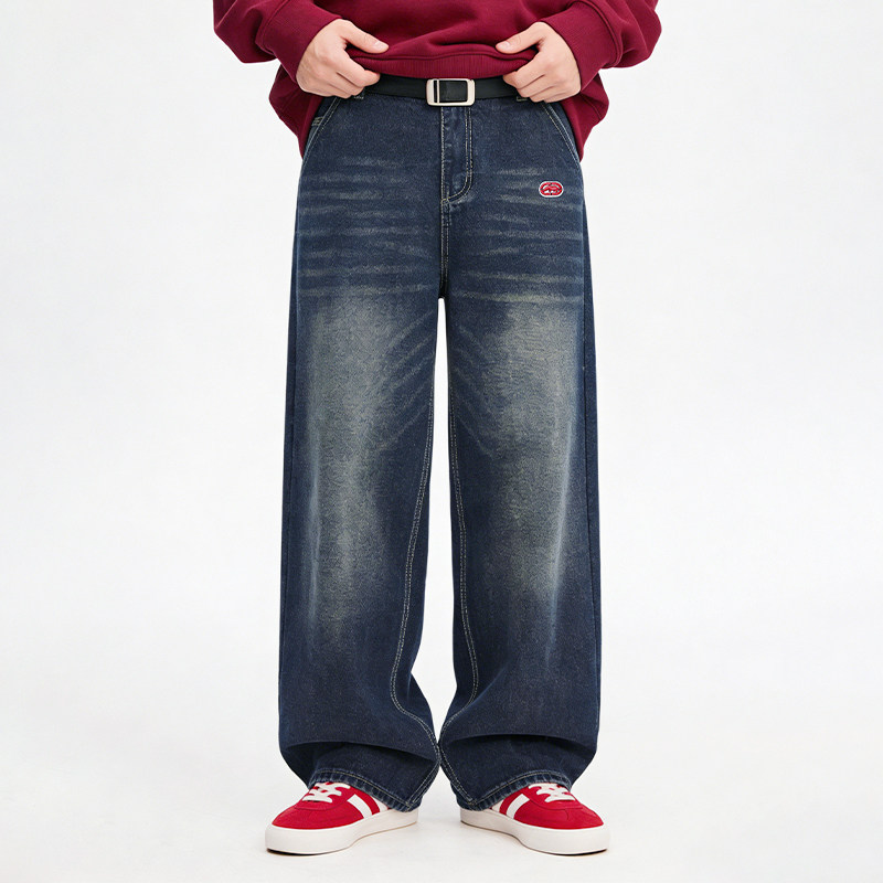 ecko红犀牛 美式复古水洗做旧直筒猫须牛仔裤男2025冬季新款长裤