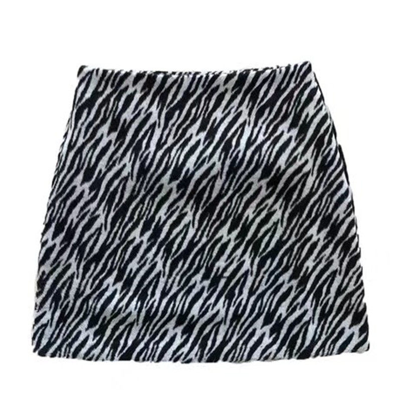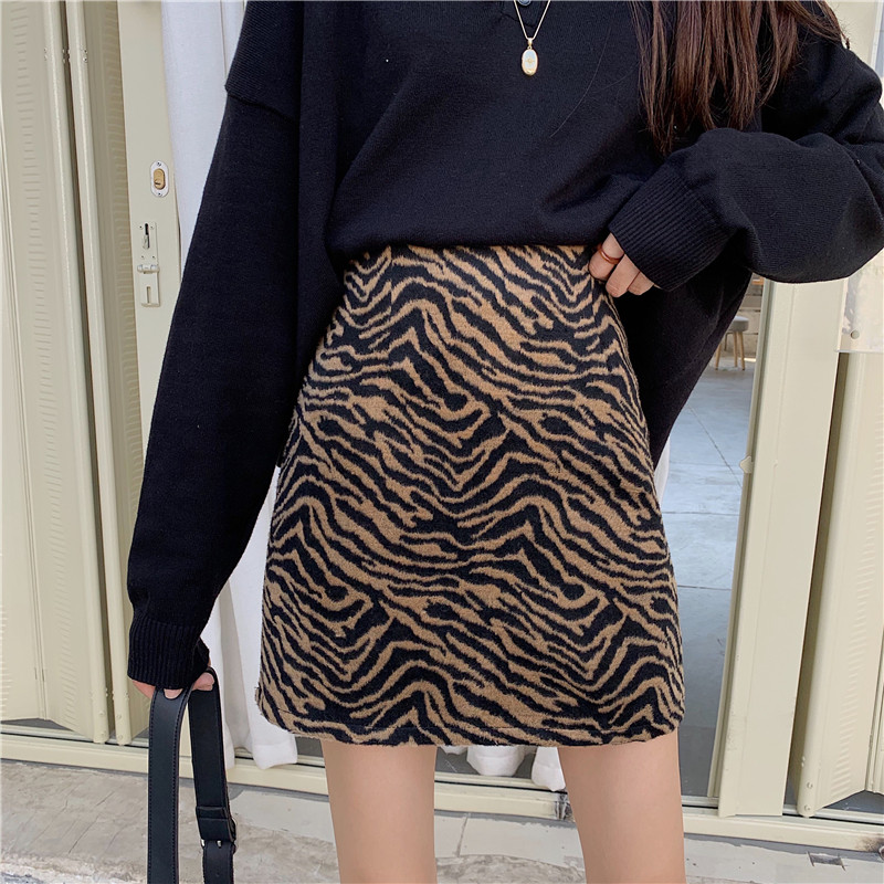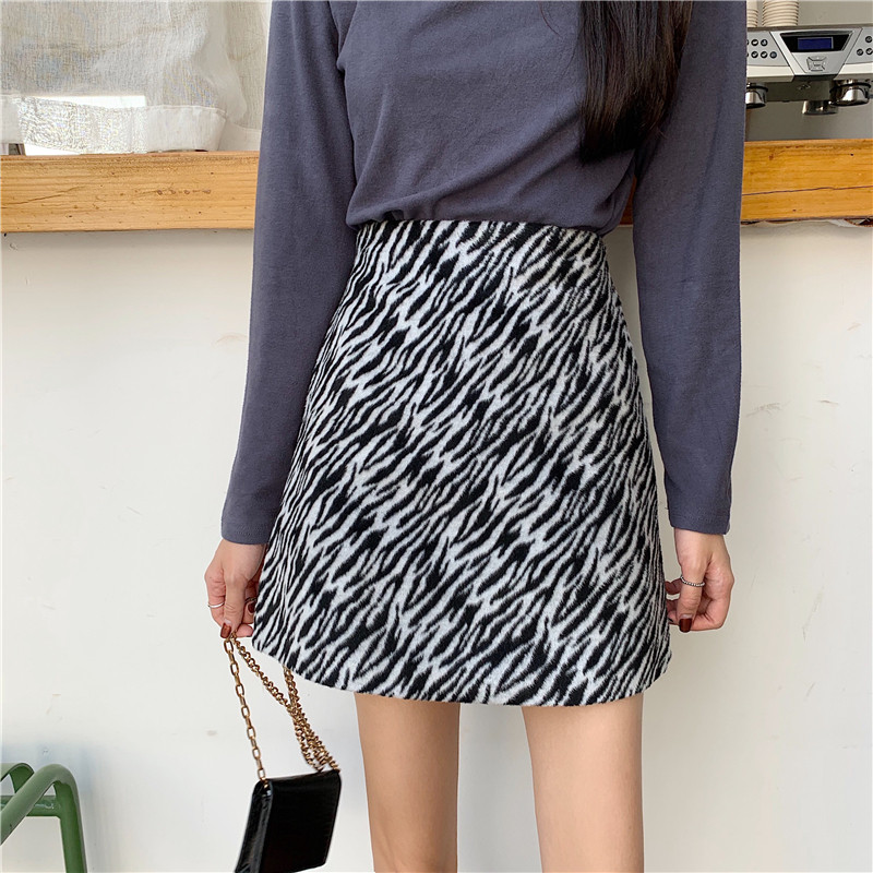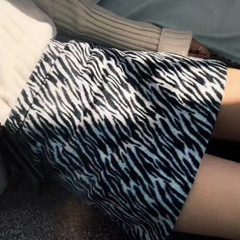 复古毛呢斑马纹半身裙女秋冬大码胖mm高腰百搭chic短裙包臀a字裙