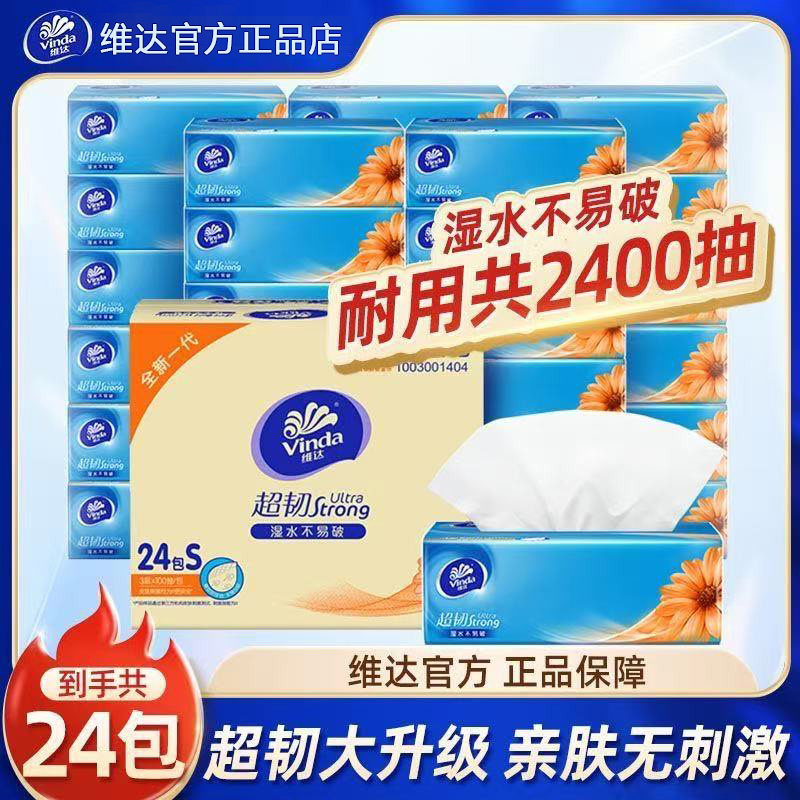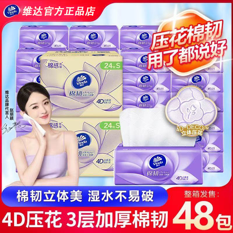 【百亿补贴臻选】维达抽纸棉韧立体美24包整箱家用实惠装卫生纸巾