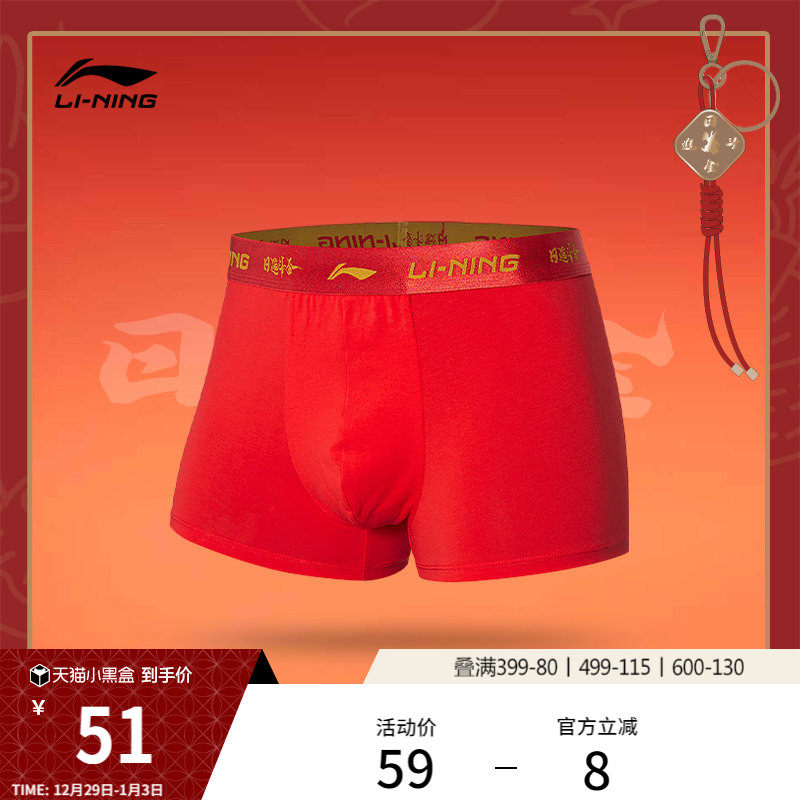 李宁日进斗金男士红色内裤2026新年款官方马年本命年弹力运动内裤