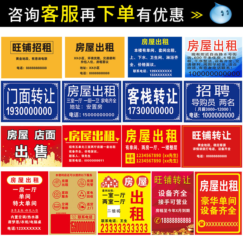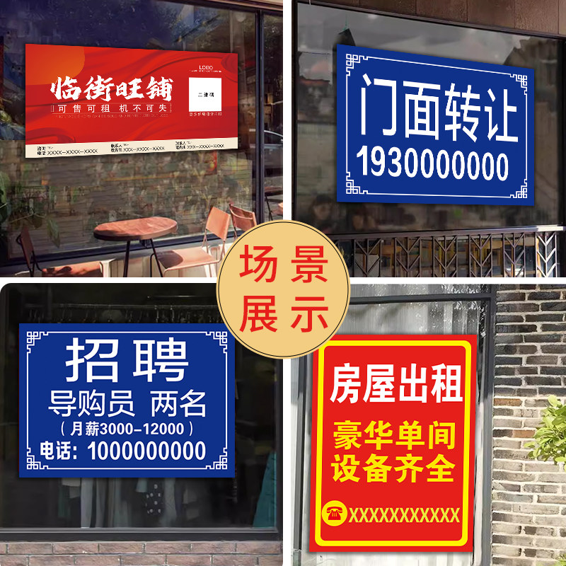 房屋出租广告贴厂房招租旺铺转让标识牌货车叉车汽车出租墙贴商铺门面店面仓库租售广告提示牌贴纸海报定制