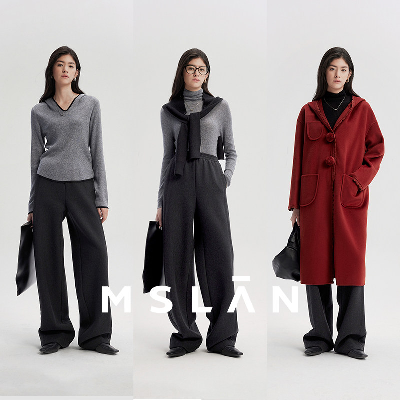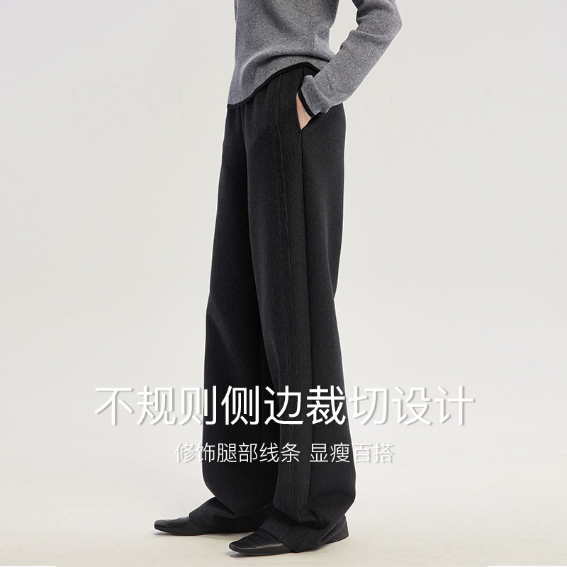 垂垂裤/MSLAN26春冬 立裁时尚休闲裤绒面活页松紧腰深灰阔腿裤