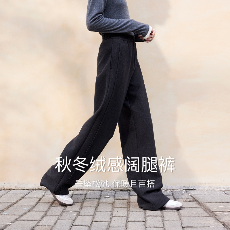 糯米裤女羊羔绒垂坠感软糯加绒加厚秋冬韩系慵懒松弛感阔腿裤TB