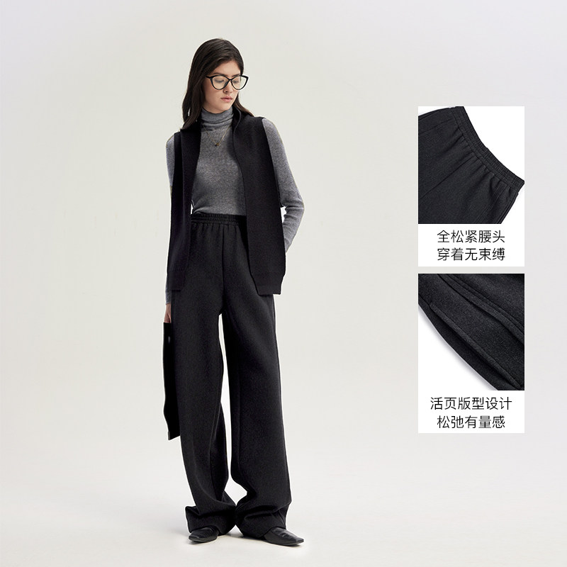 唐狮DESSO秋冬新款糯米裤高腰垂感宽松加绒直筒阔腿裤5
