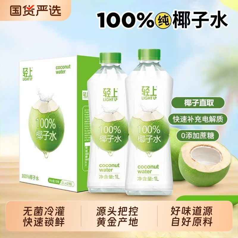 轻上100%椰子水孕妇可喝含泰国椰源椰子汁1L大瓶装含电解质饮品