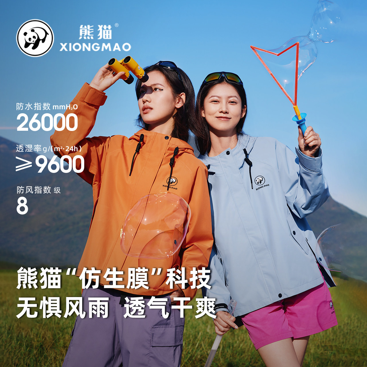 熊猫户外冲锋衣女装短外套2026新款防风水夹克风衣百搭徒步登山服