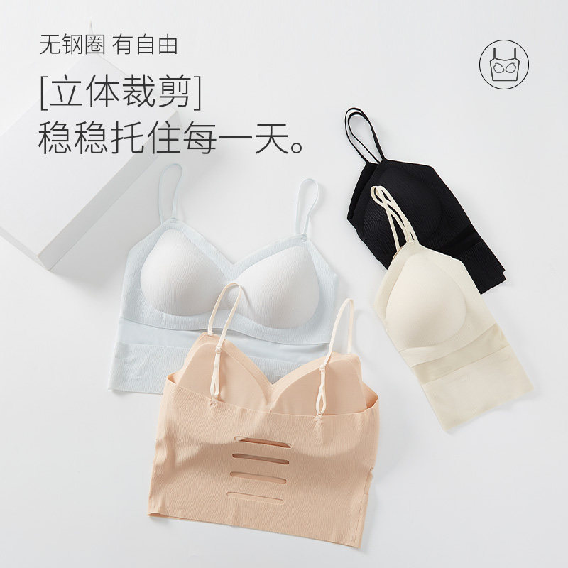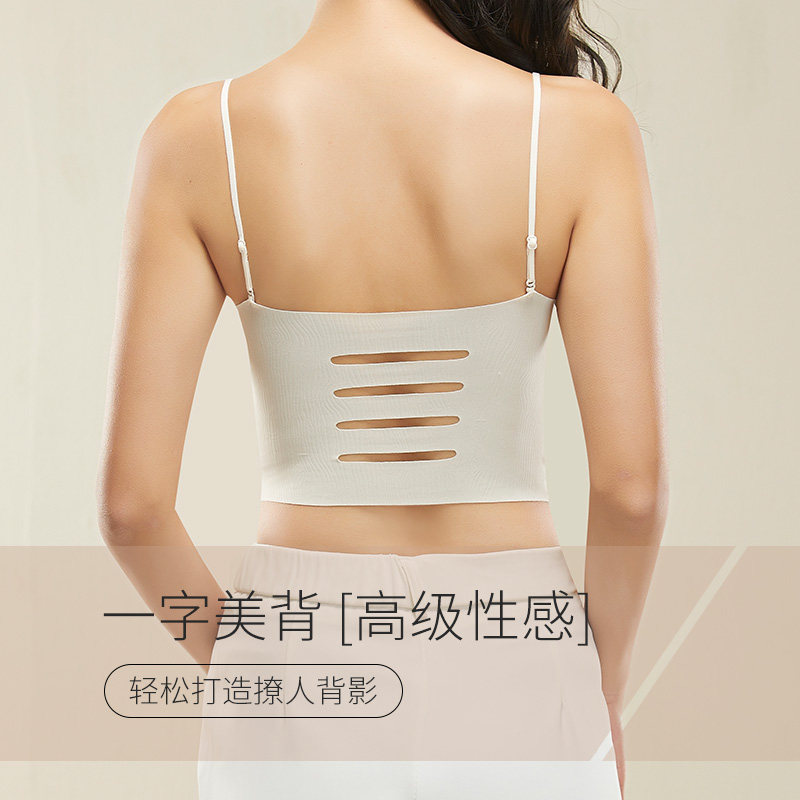 楷兰纯轻盈抹胸吊带背心带胸垫一体式文胸镂空美背春夏薄款内衣