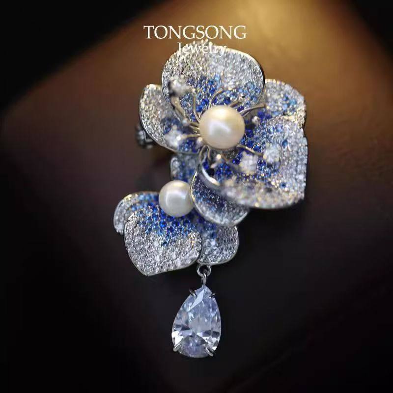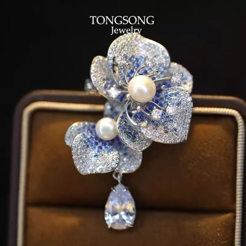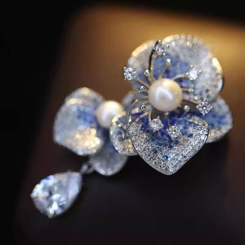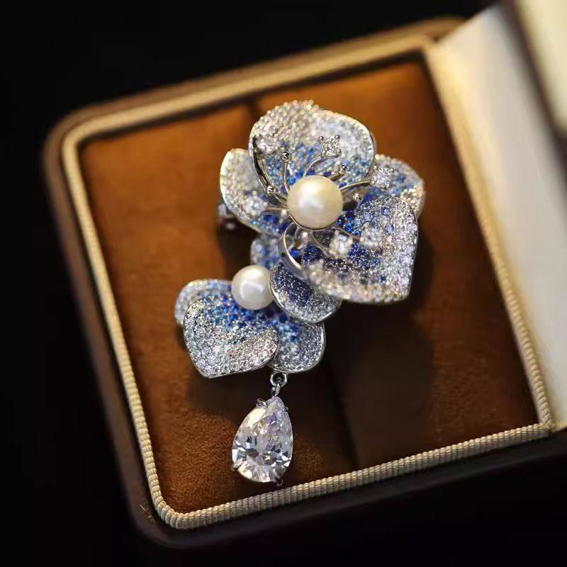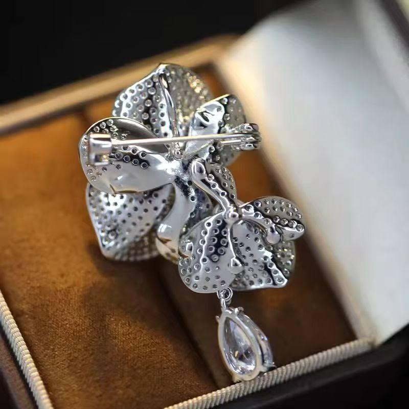 微镶锆石仿珍珠花朵蝴蝶兰胸针女胸花别针奢华西装时尚西装配饰