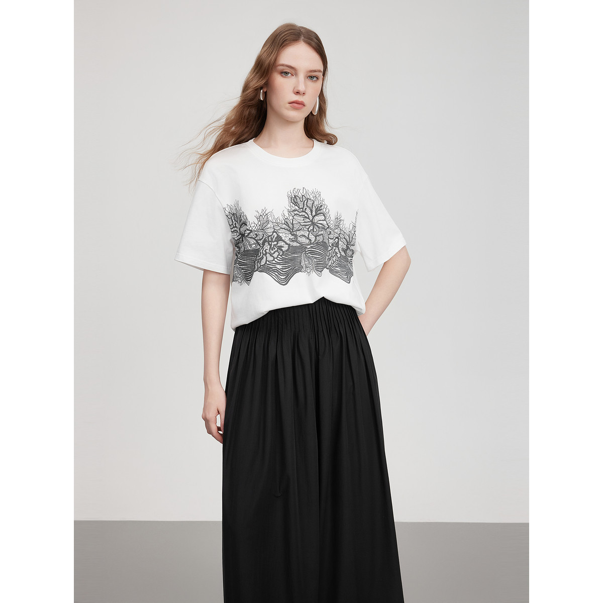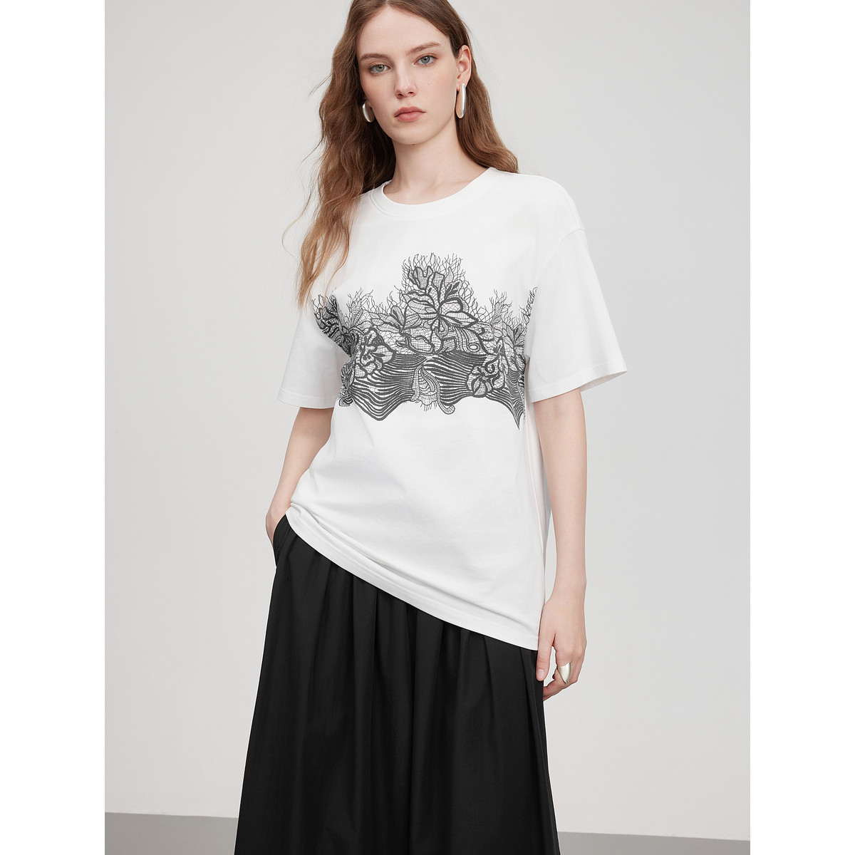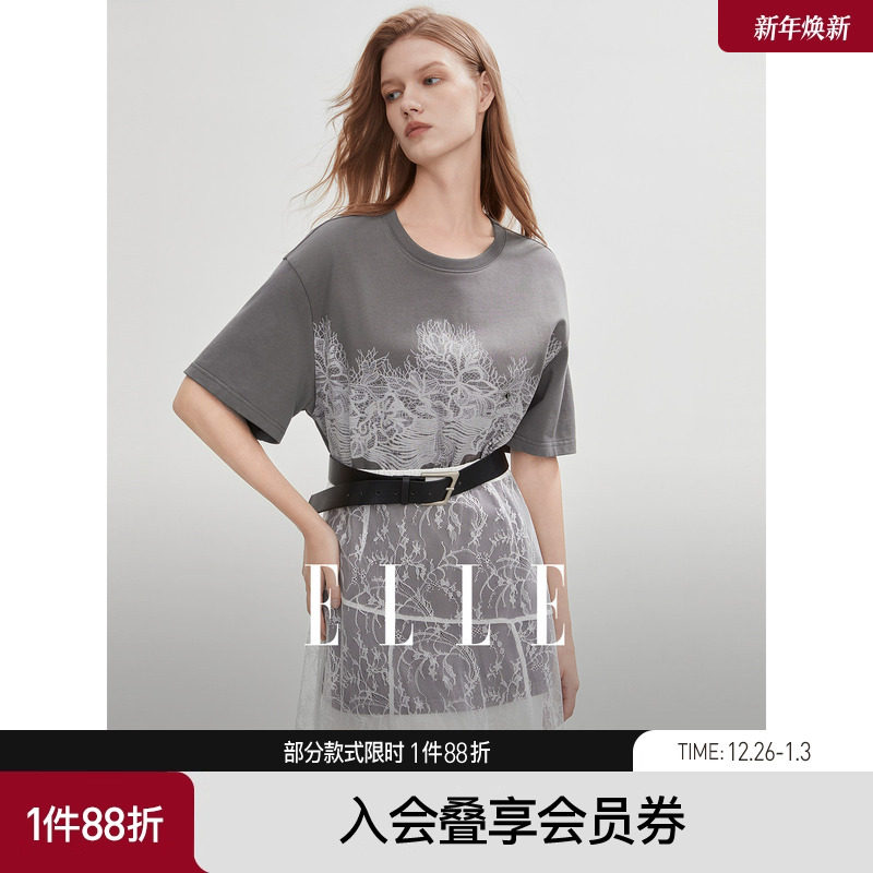 【纯棉T恤】ELLE法式时髦印花圆领短袖女2025夏新款宽松休闲上衣