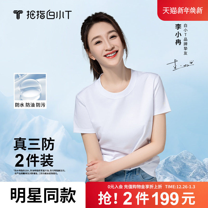 拇指白小T纯棉圆领短袖t恤男女新款三防上衣夏季半袖休闲打底衫
