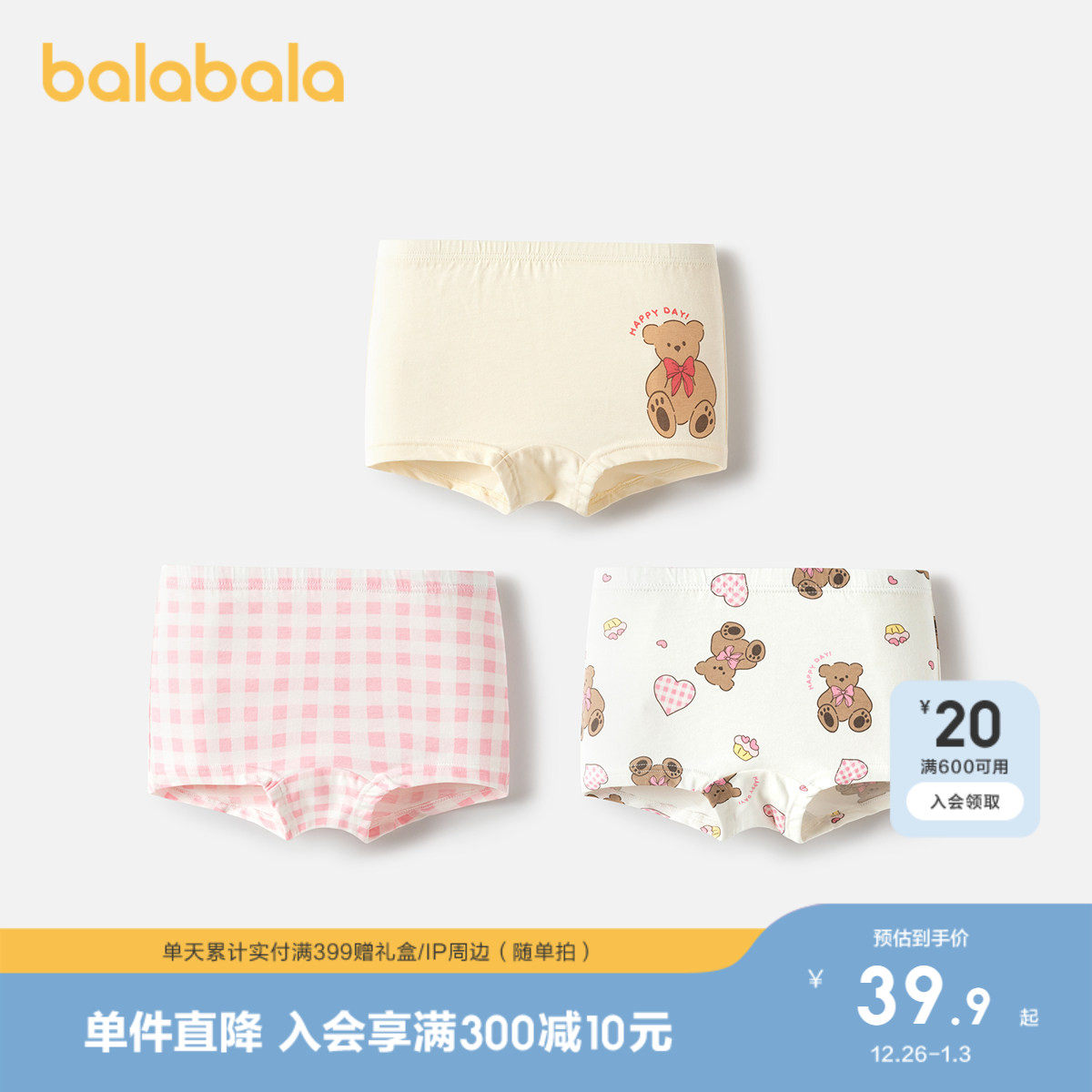 巴拉巴拉宝宝内裤棉平角女童四角短裤舒适萌亲肤儿童不夹PP三条装